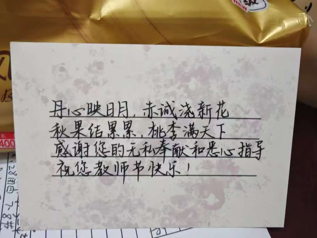 节日当天, 学生代表们分组前往各教研室与行政办公室,怀着深厚敬意与感恩之情,为老师们献上精心准备的节日祝福。同学们将亲手制作、满载真挚情谊的贺卡,庄重地呈递到恩师手中,并表达深切而诚挚的问候:“老师,您辛苦了,祝您节日快乐!” 许多教师在收到这份独具匠心的礼物时,欣慰与感动之情溢于言表。