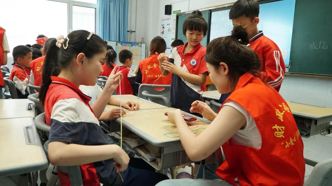 在文化传承与价值塑造的实践场域中,学生志愿者以端午手绳编织、香包制作为载体,将 "诚信如绳结牢固" 的精神内核融入指尖艺术。示范平结技法时,"步步扎实" 的人生哲理随丝线交织,化作可触摸的诚信图腾;填充艾草、绣制 "诚实" 字样的过程中,传统文化的芬芳与诚信理念的庄重完美融合。这场手工实践便升华为传统文化与现代德育的深度对话,让诚信美德在经纬穿梭与针脚起落间,焕发崭新的时代生命力。