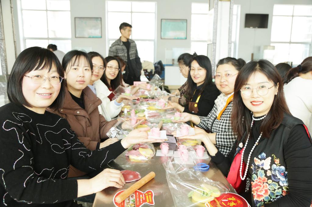 活动得到了篮彩购买app校企合作企业——山东火山农业科技有限公司的大力支持,为我们提供了纯天然、无添加的原材料。活动现场,非遗传承人为大家演示了玫瑰花、福袋、小元宝等花式面点的制作过程。现场女教职工纷纷投入到面点制作中,以灵巧的双手、巧妙的构思和天马行空的想象力,将手中的彩色面团变成各色花朵、蝴蝶结、飞鸟等面点,尽情享受充满麦香与欢笑的时光。