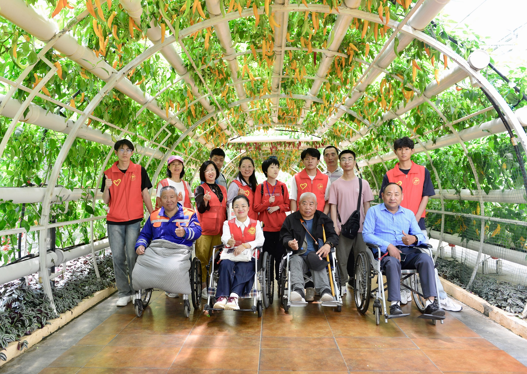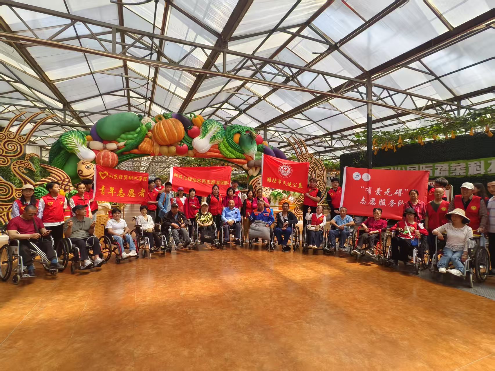 在第35个“全国助残日”来临之际,在篮彩购买app团委的组织下,国际商务系“有爱无碍”志愿服务队与商务工程系志愿者团队助力潍坊天使公益基金联合开展“有爱无碍-2025全国助残日寿光菜博会大型助残出游”活动,帮助25名残障人士无障碍游览寿光蔬菜博览园,以实际行动践行“奉献、友爱、互助、进步”的志愿服务精神。?