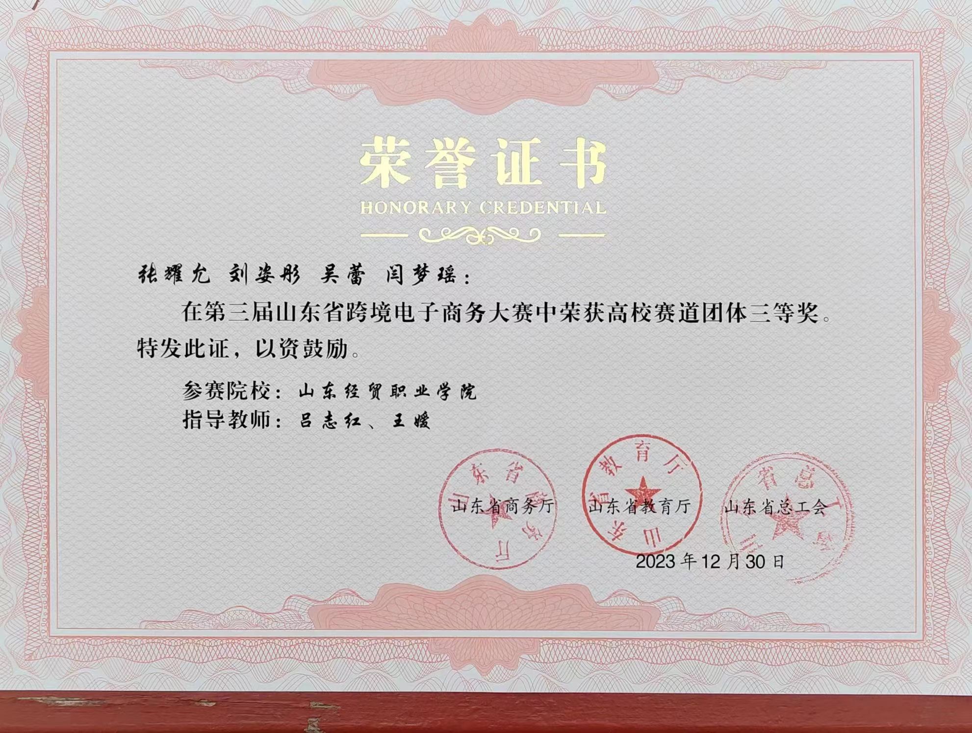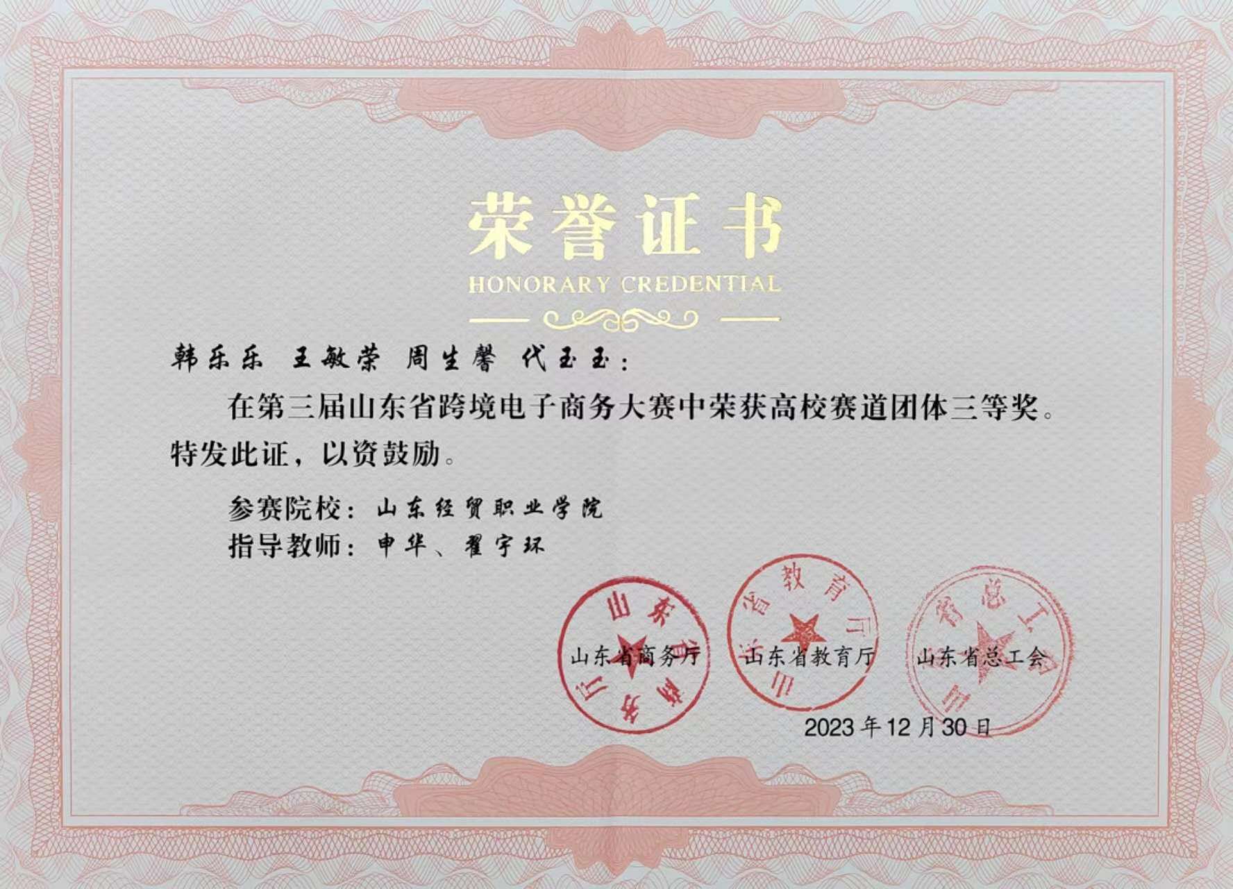 第三届山东省跨境电子商务大赛高校赛道团体三等奖2项
