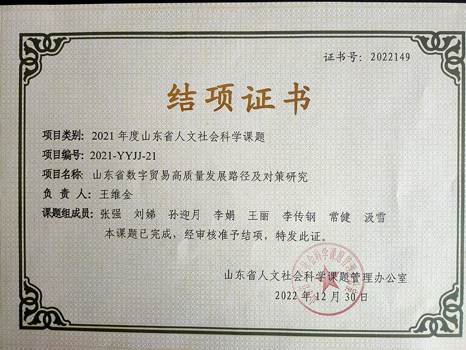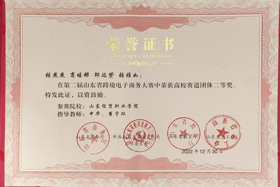 第二届山东省跨境电子商务大赛中荣获高校赛道团体二等奖