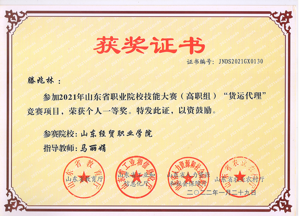 人才培养成果显著:在全国关务技能、货运代理等大赛中获二等奖6项、团体三等奖2项及多项个人奖,在省职业院校技能竞赛中多次获得一等奖二等奖。