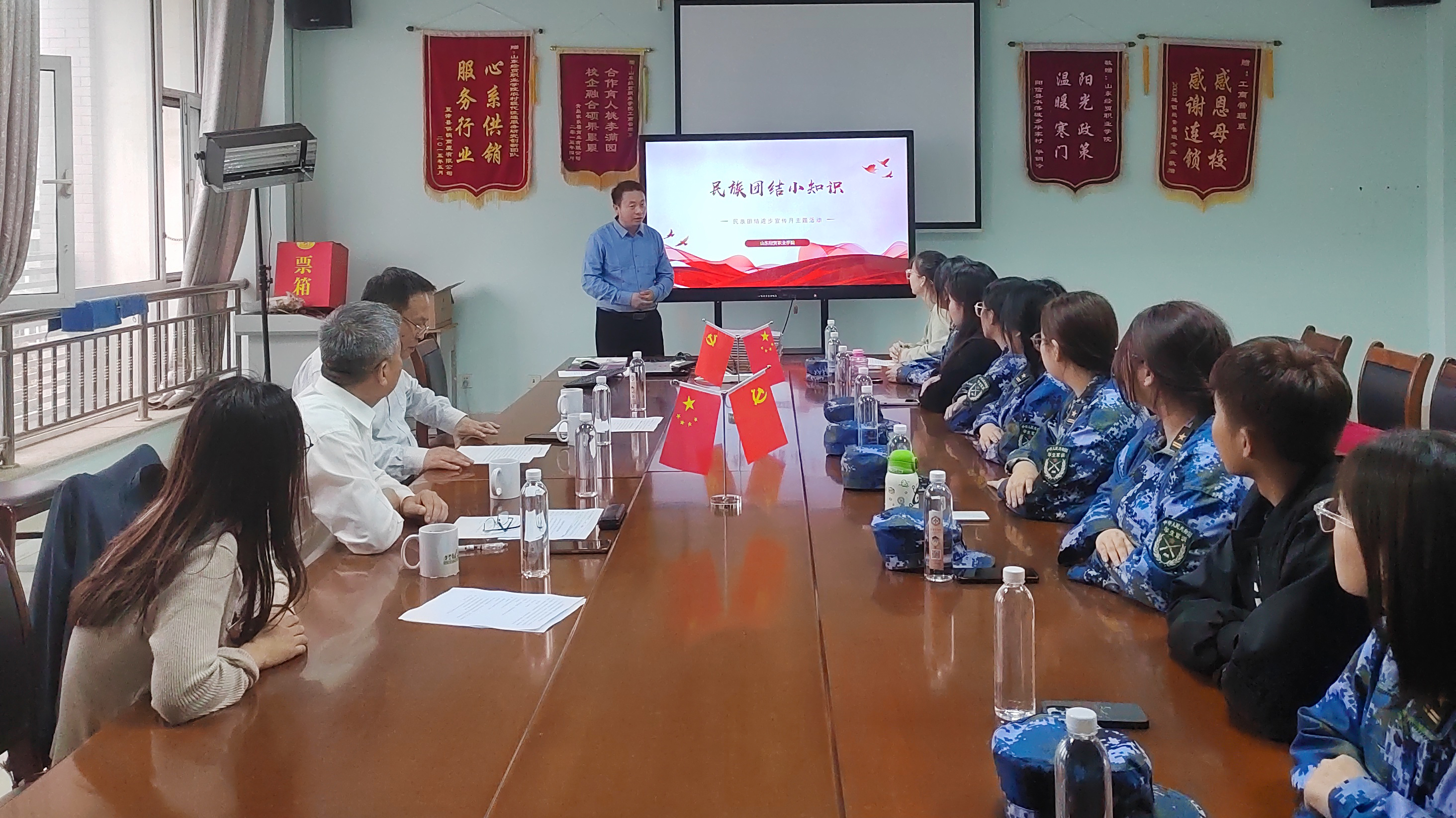 会上,师生们共同学习了民族团结进步的理论知识,观看了民族团结进步主题微视频,一起聆听了民族学生王佳怡同学的成长故事。与会领导向民族学生赠送了笔记本,同师生一起围绕“民族团结进步青年何为?”等话题进行了交流,倾听了民族学生的学习、生活诉求。