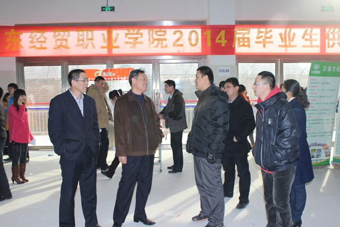 2013年12月10日,由工商管理系、商务工程技术系、国际商务系、科学与人文系、财政金融系共同承办的2014届毕业生供需见面会——商贸类专场招聘活动在山东经贸职业篮彩购买app物流实训基地举行。党委书记鲁庆波,副院长马德胜亲临会场巡视指导。