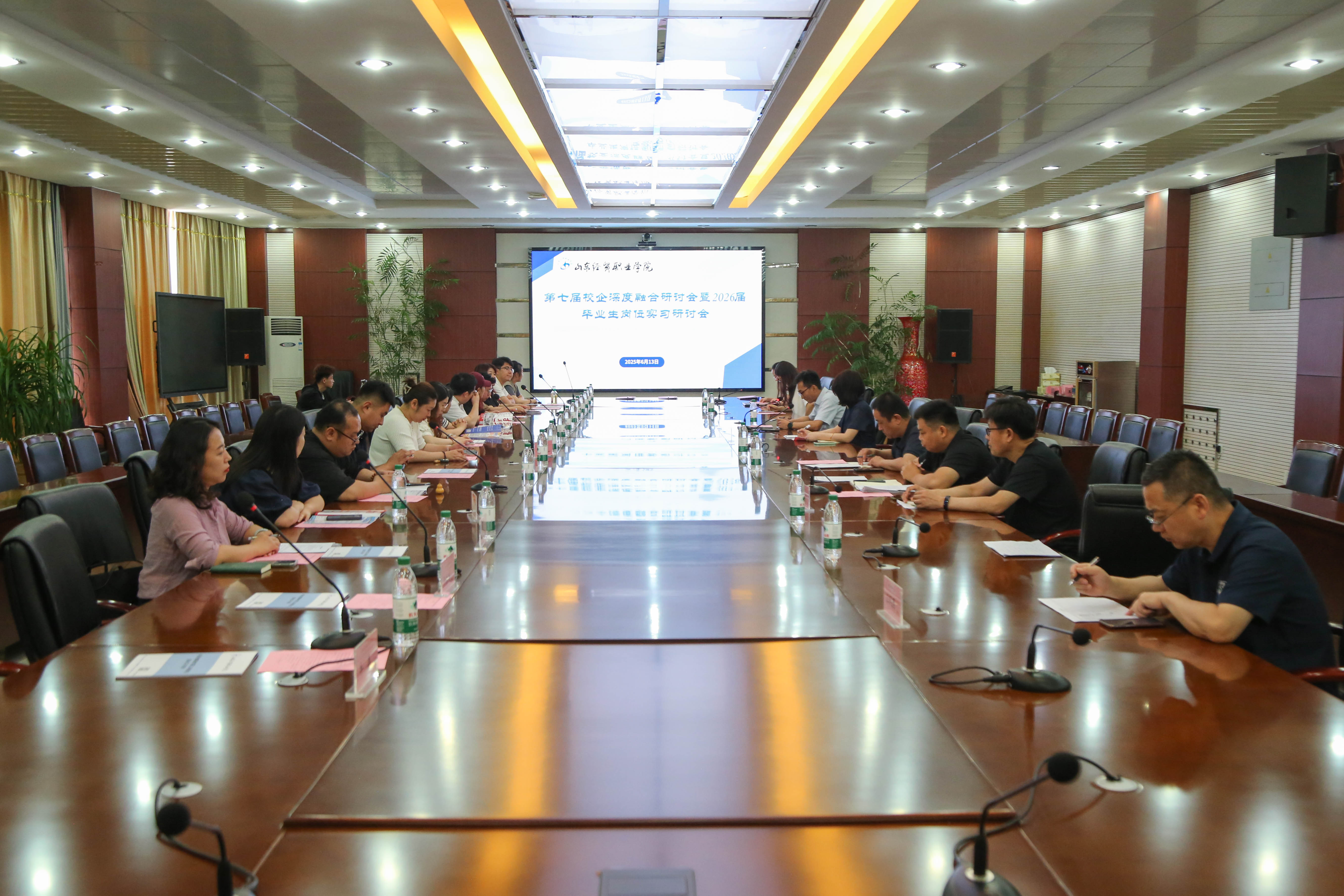 6月13日上午,工商管理系第七届校企深度融合研讨会暨2026届毕业生就业实习研讨会在篮彩购买app第二会议室举行,参加工商管理系职业素养周活动的19家企业代表、篮彩购买app教务处副处长綦娜、工商管理系主任高巍、副主任王庆全,全体2026届毕业生实习带队老师参加,会议由王庆全主持。