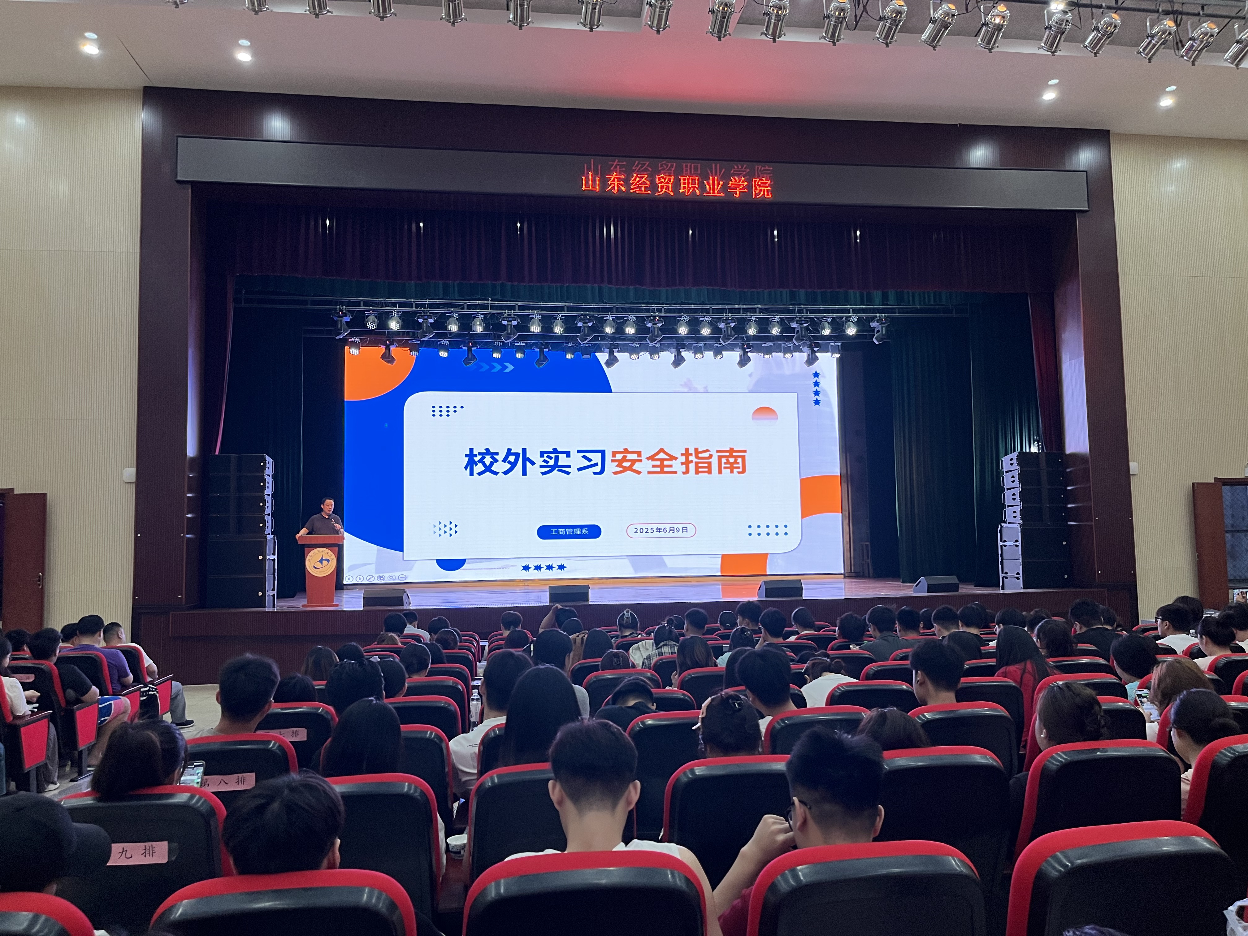 6月9日,工商管理系在大学生创新创业活动中心召开2023级学生岗位实习工作动员大会,为即将踏上实习岗位的学生们指明方向、筑牢安全防线。工商管理系主任高巍、副主任王庆全出席会议并作重要讲话,2023级全体学生及实习带队教师参加了此次大会。 会上,高巍主任首先从实习的重要意义入手,强调岗位实习是人才培养的关键环节,是同学们将理论知识转化为实践能力的重要契机。他着重围绕实习安全工作进行了全面说明,从人身安全、财产安全到职场安全,事无巨细地叮嘱同学们要提高安全意识,遵守实习单位的安全规章制度,时刻保持警惕,确保实习期间的安全。