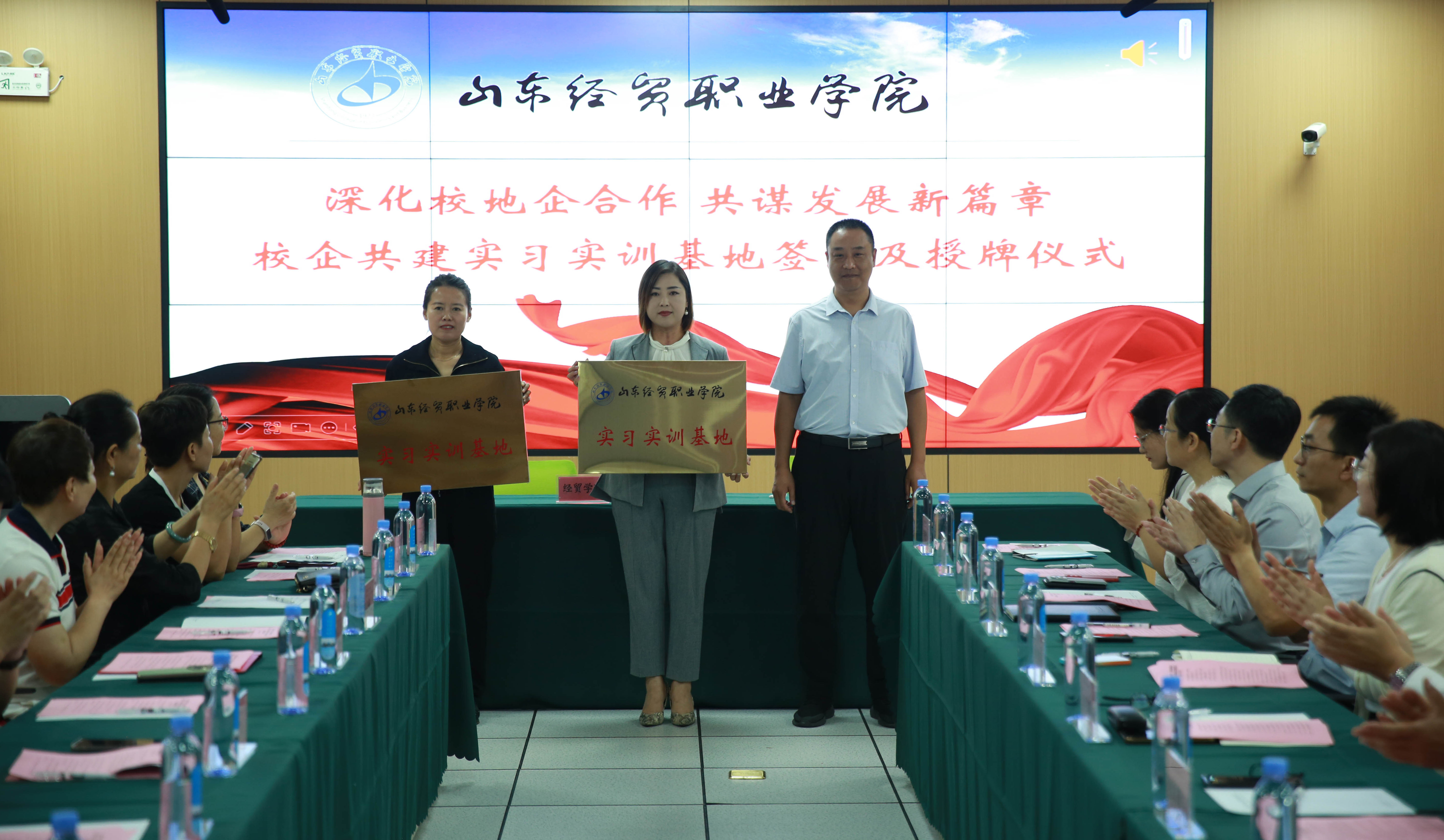 潍坊上农智田农业科技有限公司、潍坊神元生物科技有限公司与篮彩购买app签订校企合作框架协议书,篮彩购买app向两家企业授“山东经贸职业篮彩购买app学生实习实训基地”和“山东经贸职业篮彩购买app教师工作站”牌匾。
