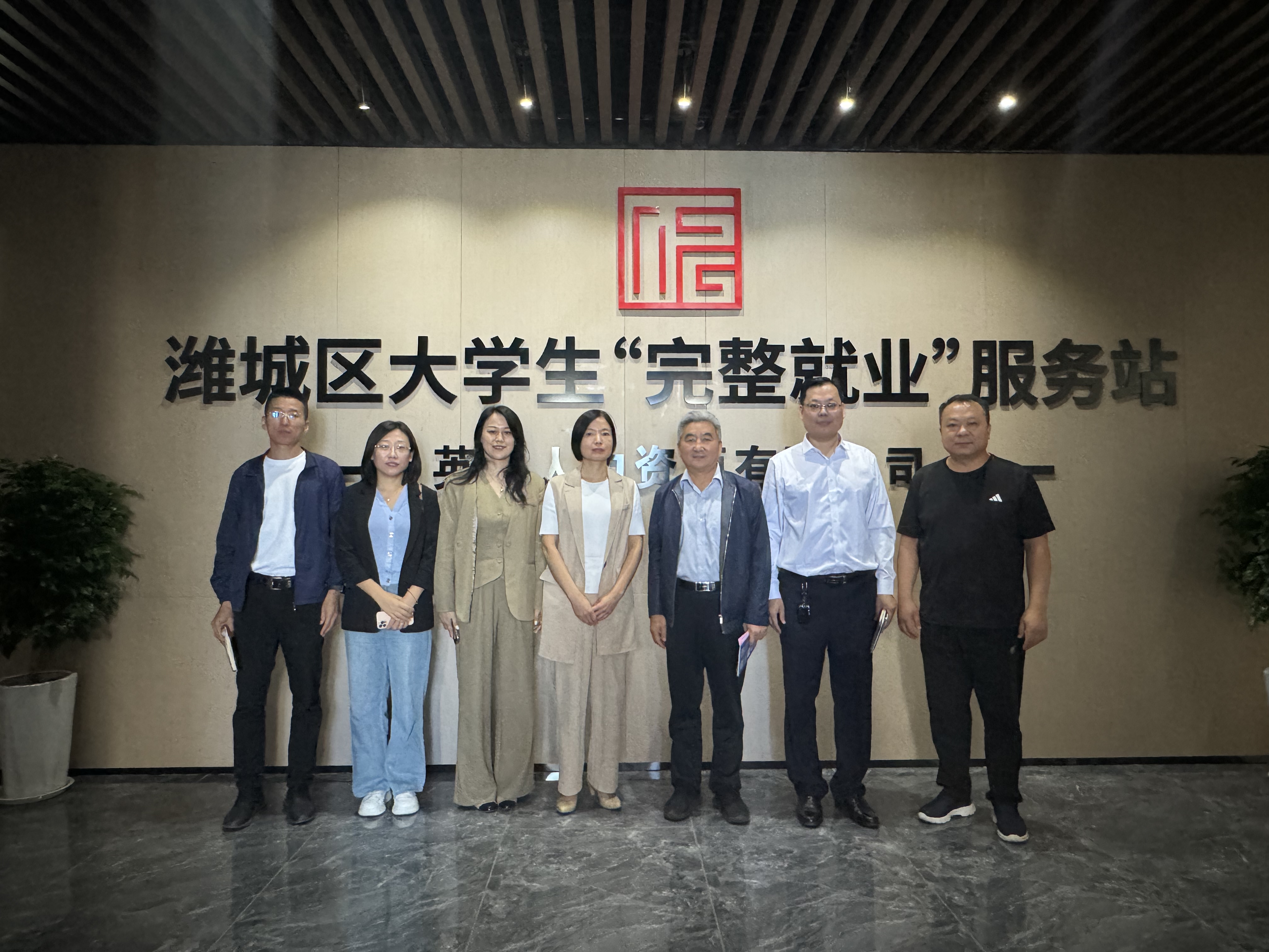 2024年9月21日上午,全国现代商贸流通行业产教融合共同体秘书处秘书长、山东经贸职业篮彩购买app工商管理系主任李宗顺,招生就业处副处长崔建强,共同体秘书处执行秘书长高义丰,网络营销与直播电商专业负责人胡明丽一行4人到潍城区大学生“完整就业”服务站洽谈校企合作等相关事宜。区人社局局长王丽娟、副局长赵洪东,区公共就业和人才服务中心王潇、王润生、王可强,区大学生“完整就业”服务站负责人刑李子、潍坊猴弟电商、云矩网络、奇迹甄选负责人出席座谈会。