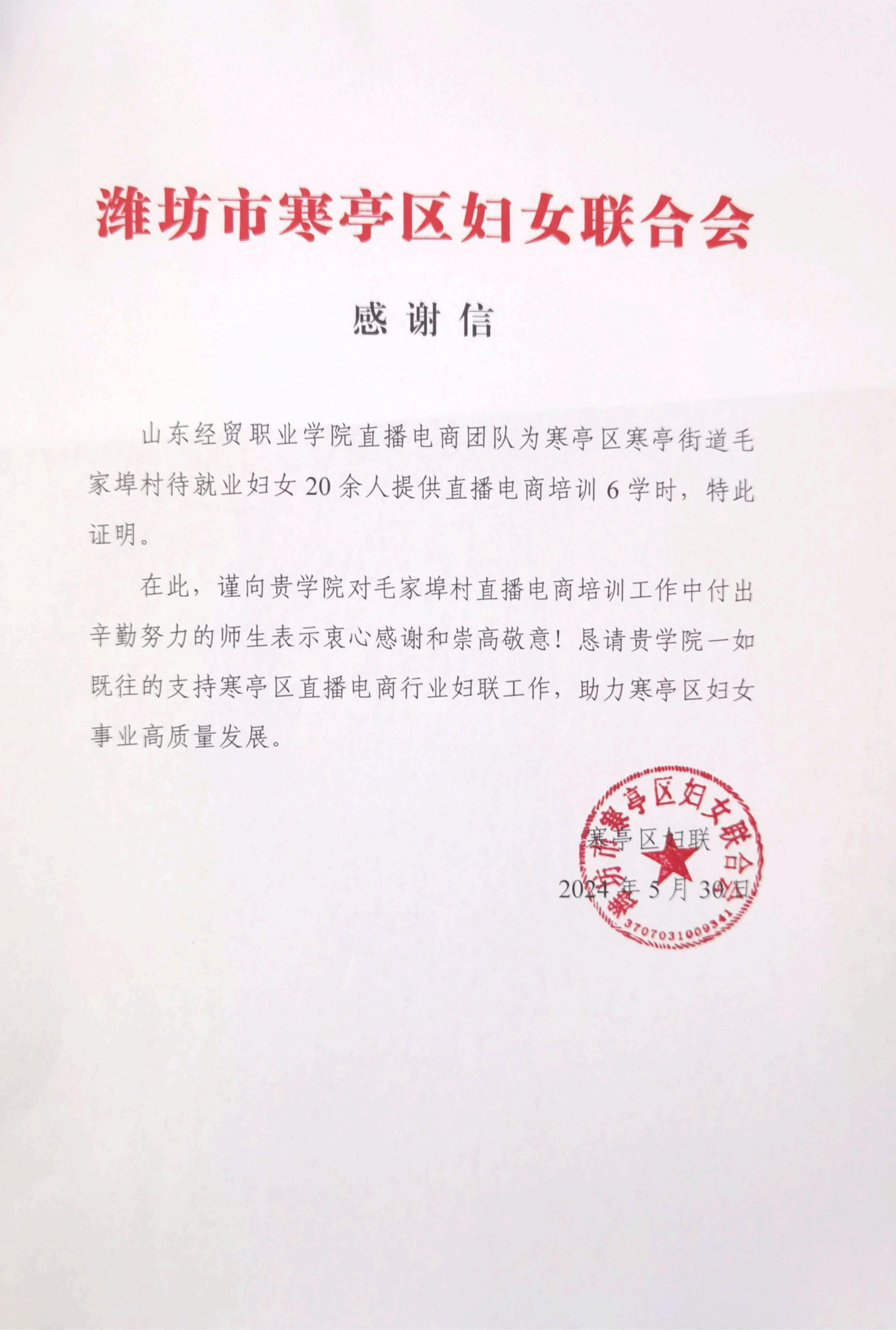 5月30日,工商管理系大学生直播团队走进了寒亭区寒亭街道毛家埠村,为当地20余名待就业妇女开展了一场别开生面的直播电商培训活动。此次培训旨在响应国家乡村振兴战略,通过现代数字技能的传授,为农村妇女开辟就业新途径,激活乡村经济潜力。