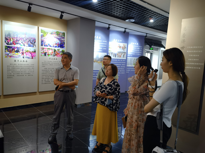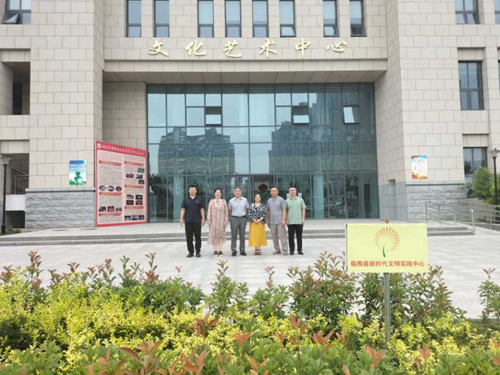 项目组考察了临朐县文化艺术中心,与文化艺术中心综合业务科科长夏立庆、非遗保护科长王飞飞、辅导培训科科长郭衡、临朐桑皮纸非物质文化遗产代表性传承人连恩平等进行了洽谈,签订了合作协议,授予临朐县文化艺术中心山东省职业教育技艺技能创新平台实训基地匾牌。双方就校企合作开发相关文创产品、非遗技艺传承、品牌推广等相关项目进行了深入交流。