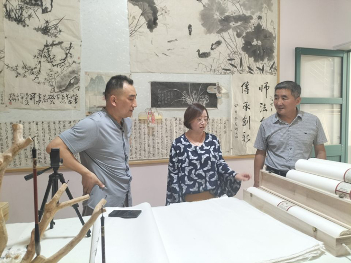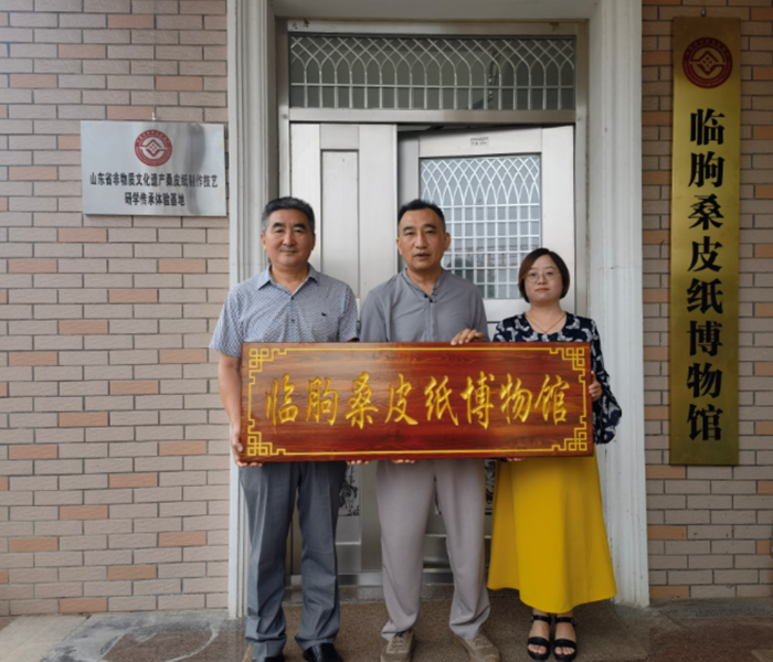 项目组与临朐桑皮纸制作技艺传习所共建临朐桑皮纸博物馆并举行了挂牌仪式。博物馆呈现了素有“寿纸千年”美称的“山东老纸”临朐桑皮纸的制作工艺,以及左伯纸笺及桑皮纸做就的契文、书画、扇面、古旧善本、文创产品等,零距离展示堪称“活化石”的桑皮纸技艺。双方探讨了桑皮纸墙纸、艾条纸等延伸产品开发与新媒体推广。