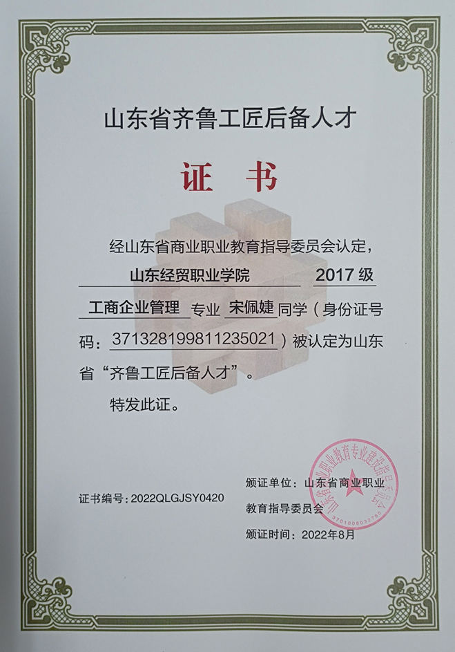 此次学生获得齐鲁工匠后备人才称号,展现了篮彩购买app人才培养的实力、特色与成果。下一步,工商管理系将进一步密切与专业建设指导委员会联系,在培养定位、专业布局、课程体系、教学模式、资源配备、考核评价等方面探索齐鲁工匠培养路径,优化专业高技能人才培养和考核方案,加强过程监控,培养篮彩购买app优秀后备人才。