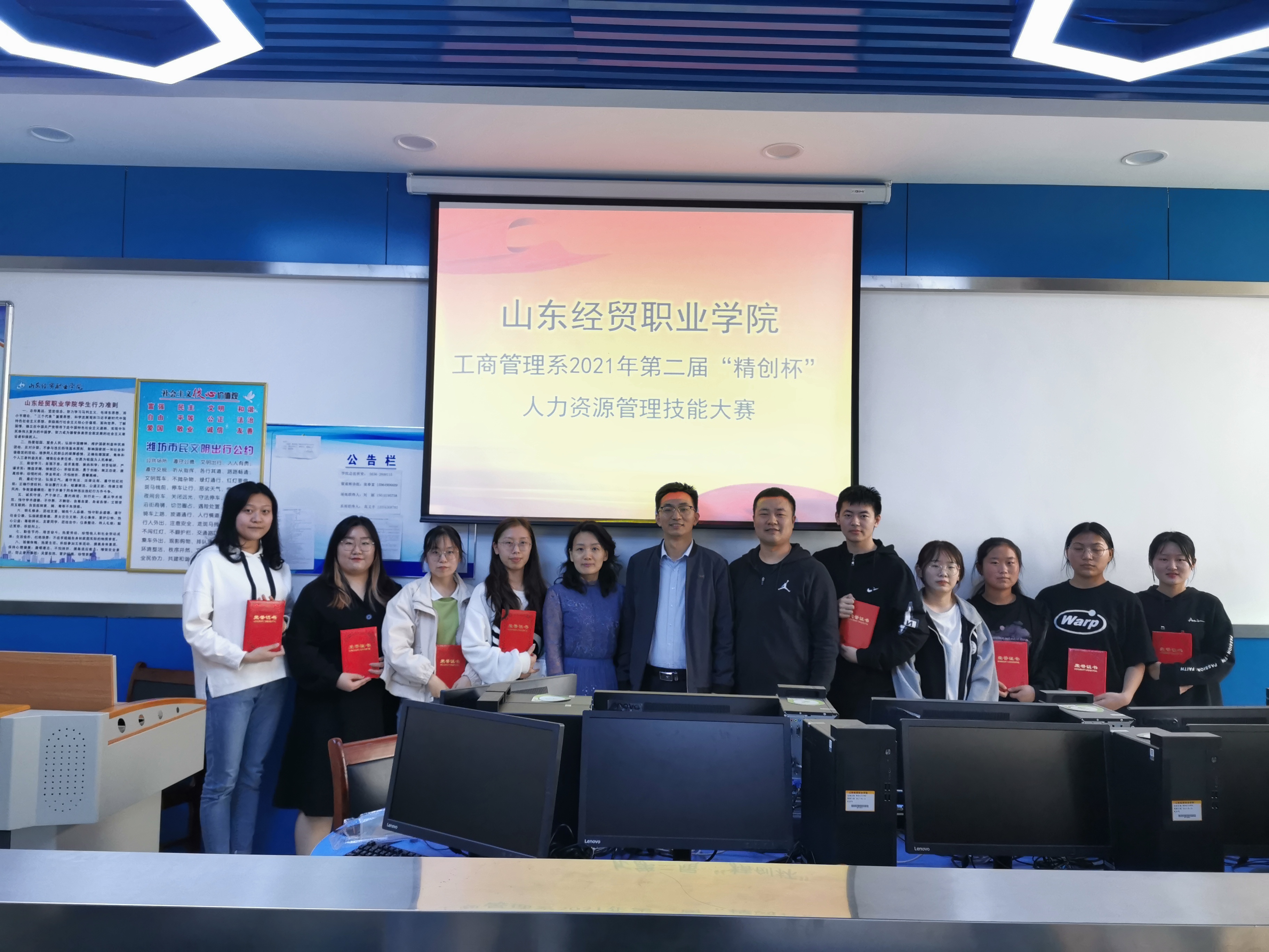 4月20日,工商管理系在人力资源管理综合实训室举办了第二届“精创杯”人力资源管理技能大赛,大赛共有9支队伍参加。
