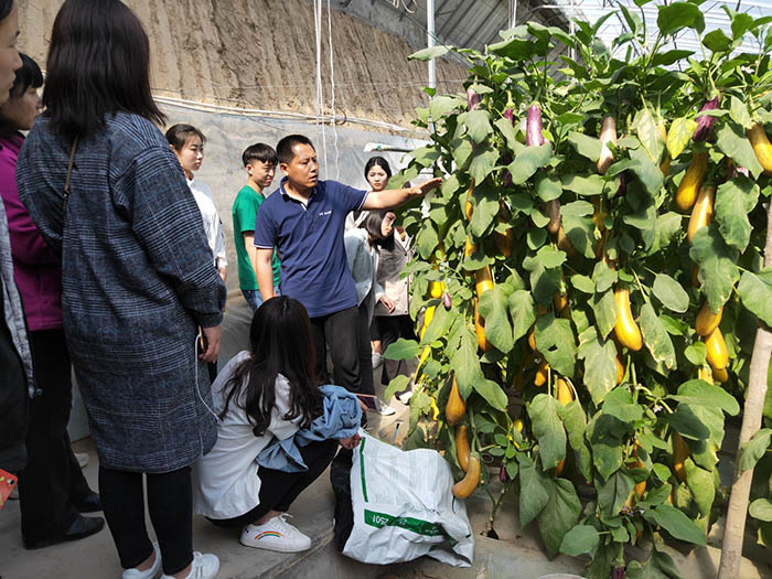 恒蔬无疆农业发展集团和山东金佰利农业科技有限公司的现代化育种大棚现场,刘辉老师亲自带领示范,师生们共同体验选种、育种并做良种种植实验;在良种种植试验田,育种专家针对培育的新品种,依次给学生示范西红柿、茄子、辣椒的田间管理要点并对每个品种的市场行情做了介绍。