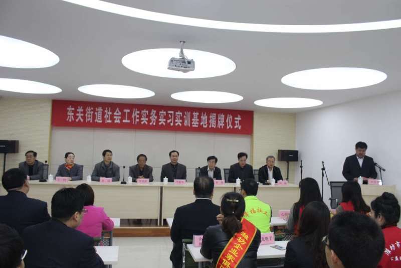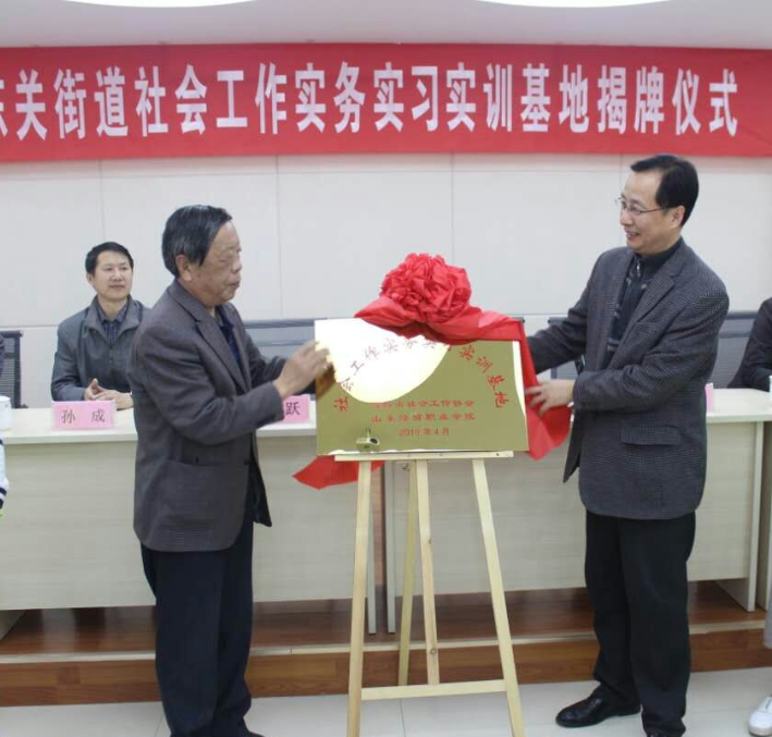 4月7日,篮彩购买app:与潍坊市社会工作协会共建社会工作实务实习实训基地揭牌仪式在奎文区东关街道社会组织服务中心举行。潍坊市社会工作协会会长、市人大常委会原副主任李本跃,篮彩购买app院长冷韶华,篮彩购买app纪委书记王爱国,潍坊市民政局副局长孙成,奎文区委常委、副区长李伟,市社工协会副会长王钧,奎文区民政局长张克成,东关街道党工委书记郑海出席仪式。仪式由东关街道党工委副书记尹昌洲主持。