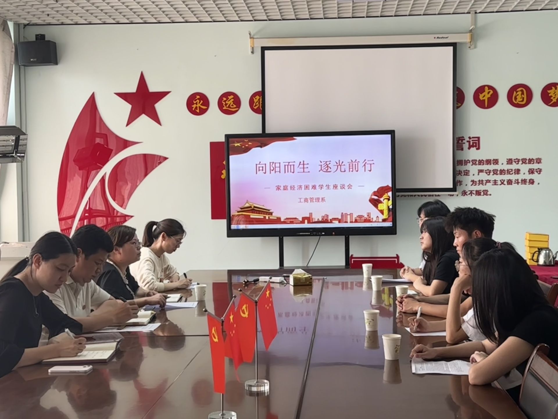 为落实立德树人根本任务,深入了解家庭经济困难学生的思想状态、学习和生活等情况,切实做到为学生办实事,提升资助育人工作实效,将学生帮扶工作融入到日常工作中去,2024年5月22日,工商管理系和学生工作处共同举行了以“向阳而生 逐光前行”为主题家庭经济困难学生座谈会,本次学生代表为2024年度家访“送温暖”走访活动中的学生,会议由工商管理系学生科科长陈精明主持。