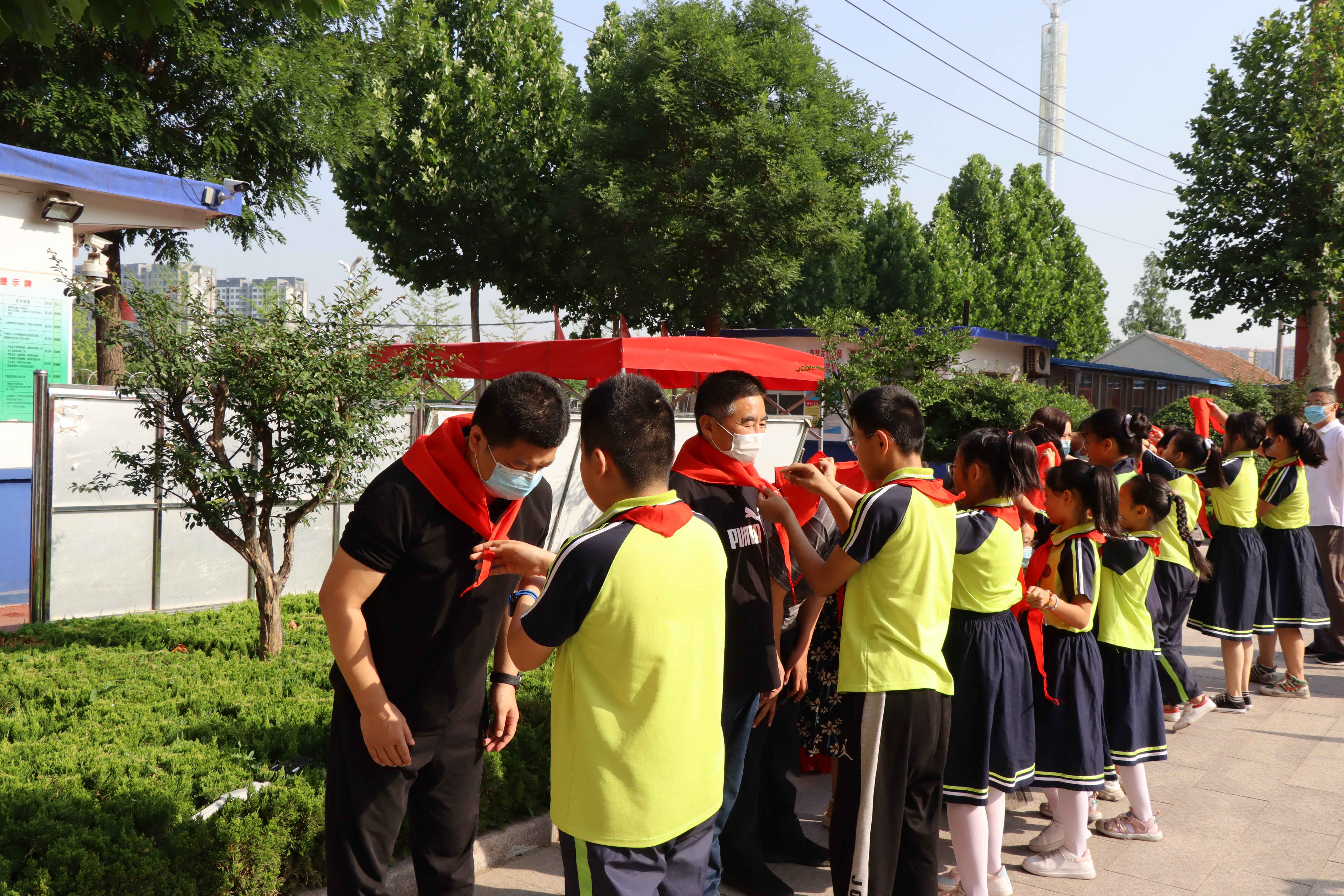 2022年6月1日上午,工商管理系党总支部分党员及入党积极分子代表,参加了潍城区仓南路学校“喜迎二十大 争做好队员”分批入队暨红领巾奖章颁章仪式。全体成员参与了孩子们的入队、唱队歌、颁奖章等仪式。