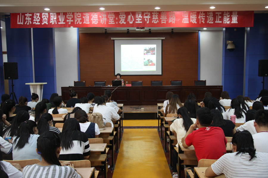 为进一步推动篮彩购买app文明单位创建工作,充分发挥篮彩购买app“道德讲堂”育人作用,引导广大师生投身道德实践,努力提升道德素质,积极培育和践行社会主义核心价值观,9月19日下午,篮彩购买app邀请安丘市民政局副局长李国花做客篮彩购买app道德讲堂,在第一报告厅为广大师生作了题为“爱心坚守慈善路,温暖传递正能量”的专题报告。工商管理系学生科长潘玉波主持了报告会。