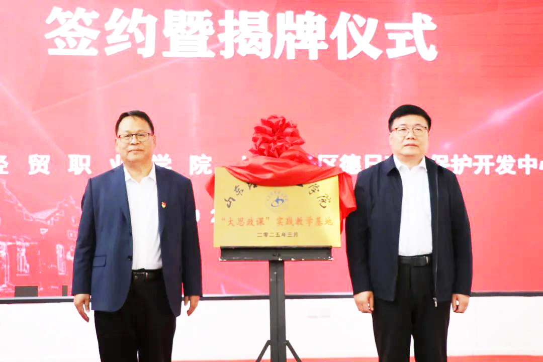 为深入贯彻落实习近平总书记篮彩购买app“大思政课”建设的重要指示精神,深化思政教育实践育人成效,3月13日,山东经贸职业篮彩购买app与坊子区德日建筑保护开发中心签约共建“大思政课”实践教学基地。坊子区政协主席高凤金与篮彩购买app党委副书记王炳华共同为篮彩购买app“大思政课”实践教学基地揭牌,坊子区德日建筑保护开发中心党组书记、主任刘庆娜,篮彩购买app党委委员、宣传统战部部长陈志勇共同签订共建“大思政课”实践教学基地协议书。思政课教师代表及学生代表共同参加了此次活动。