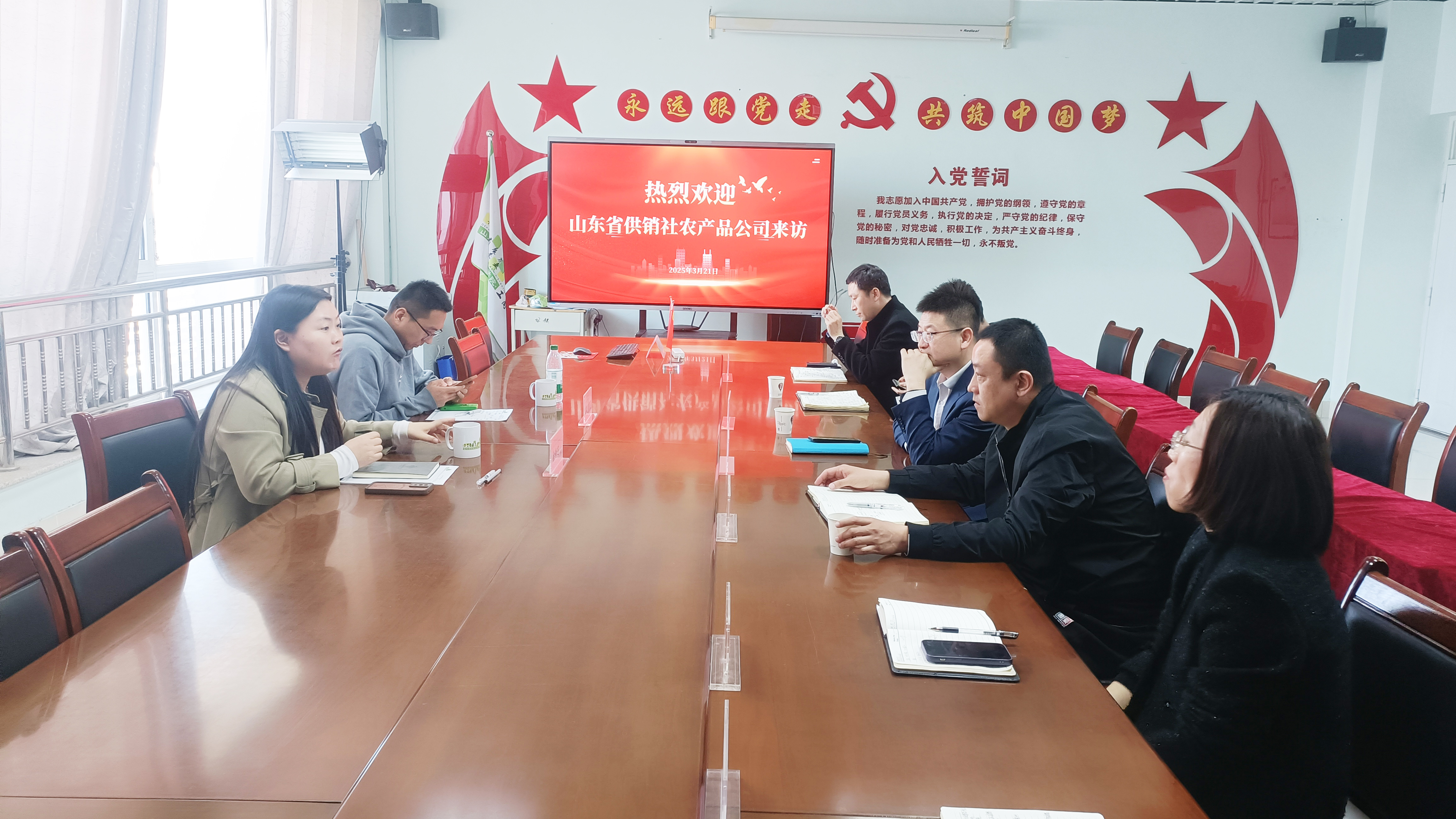 3月21日,山东省供销社农产品有限公司总经理徐新芝一行到访篮彩购买app,就校企合作、直播间建设及电商运营等开展座谈交流。篮彩购买app副院长张强,工商管理系党总支书记高巍,相关专业教师参会。