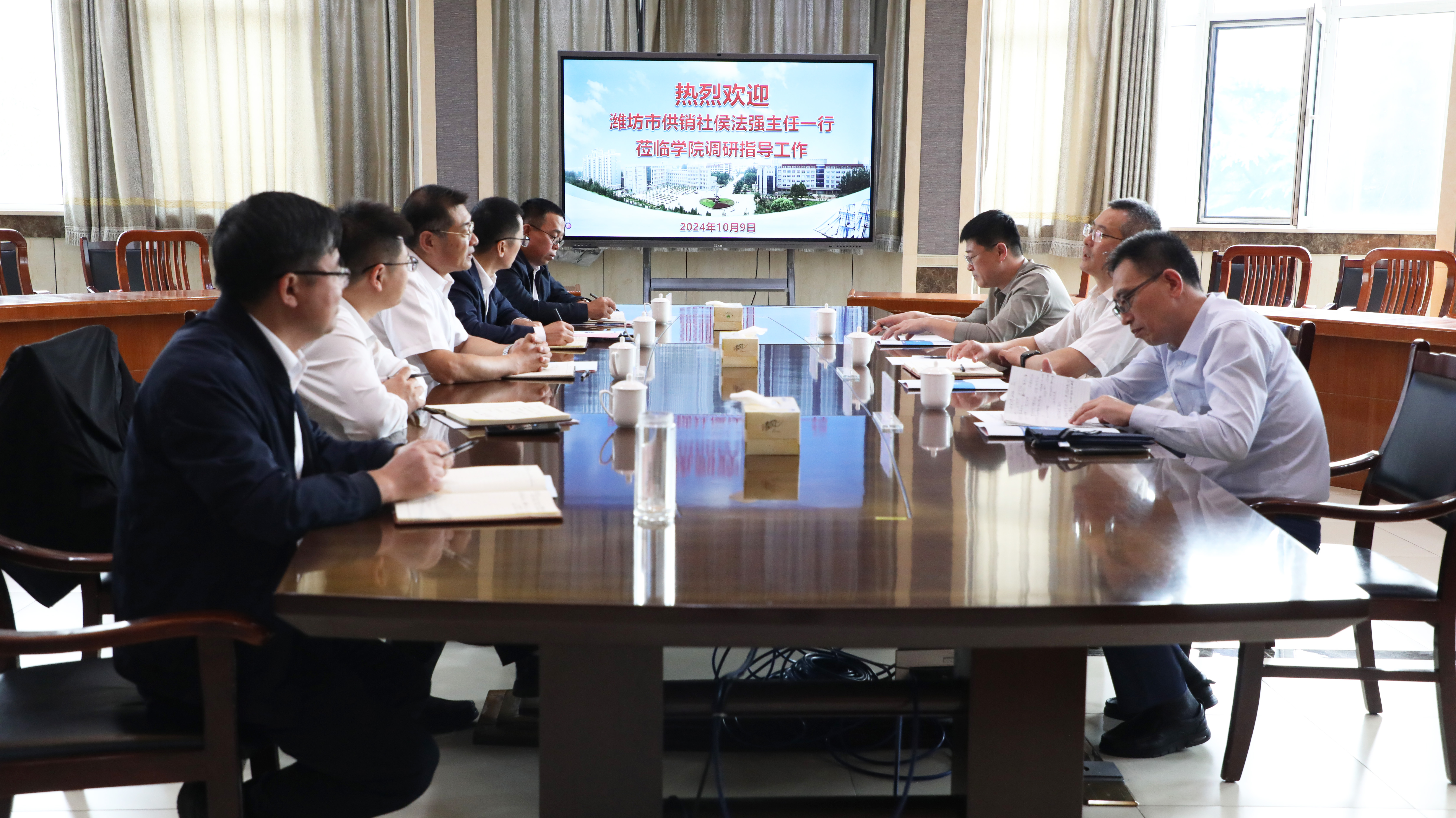 10月9日下午,潍坊市供销社党组书记、理事会主任侯法强、理事会副主任王宏伟、办公室主任程峰一行三人来校调研交流。篮彩购买app党委副书记、院长陈卫国会见客人,篮彩购买app领导班子成员参加座谈交流。