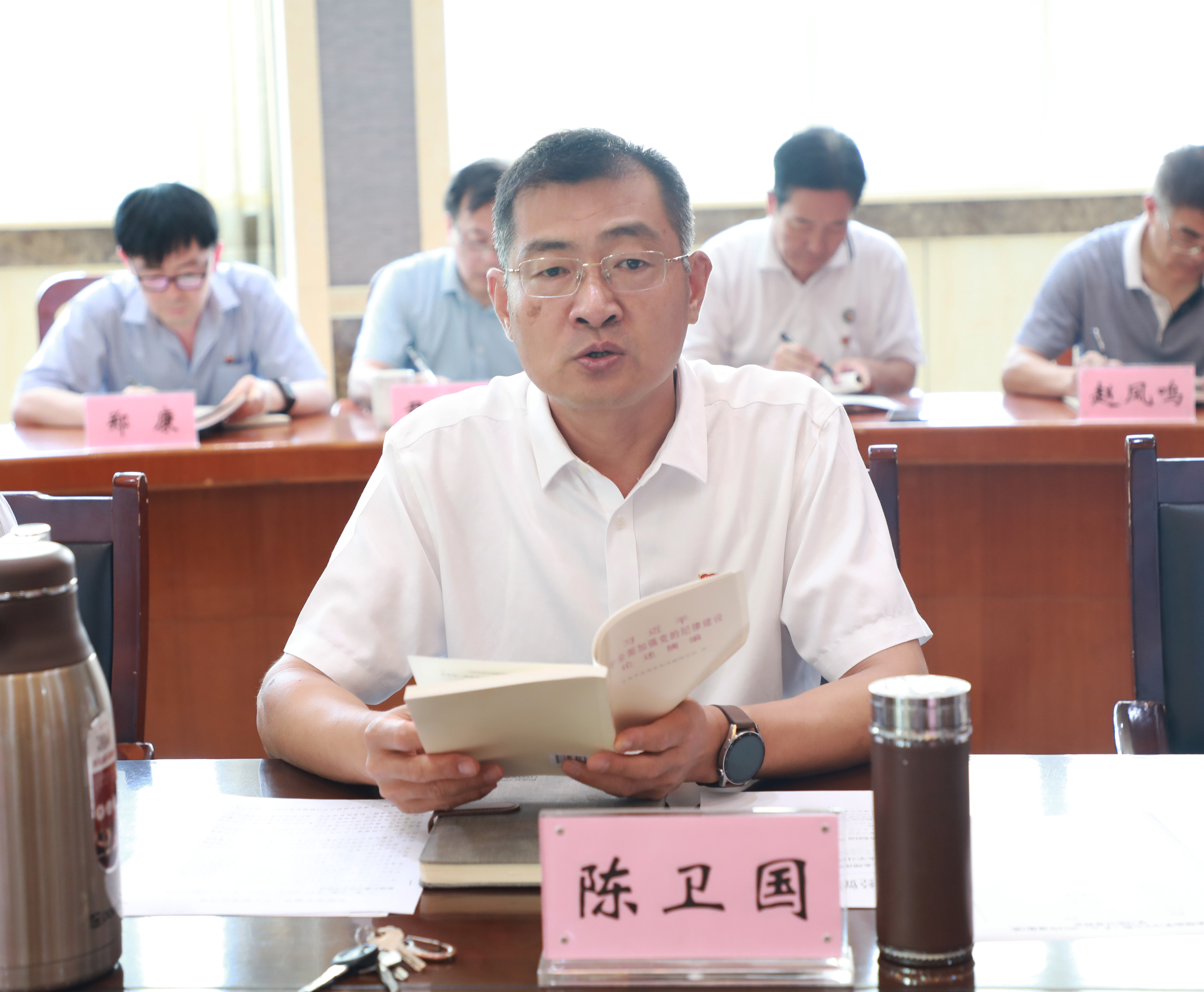 7月5日,篮彩购买app召开党委理论学习中心组(扩大)第7次学习研讨暨党纪学习教育专题学习研讨会议。党委副书记、院长陈卫国主持会议并讲话。篮彩购买app领导班子成员出席会议,各系、部门及单位负责同志列席。