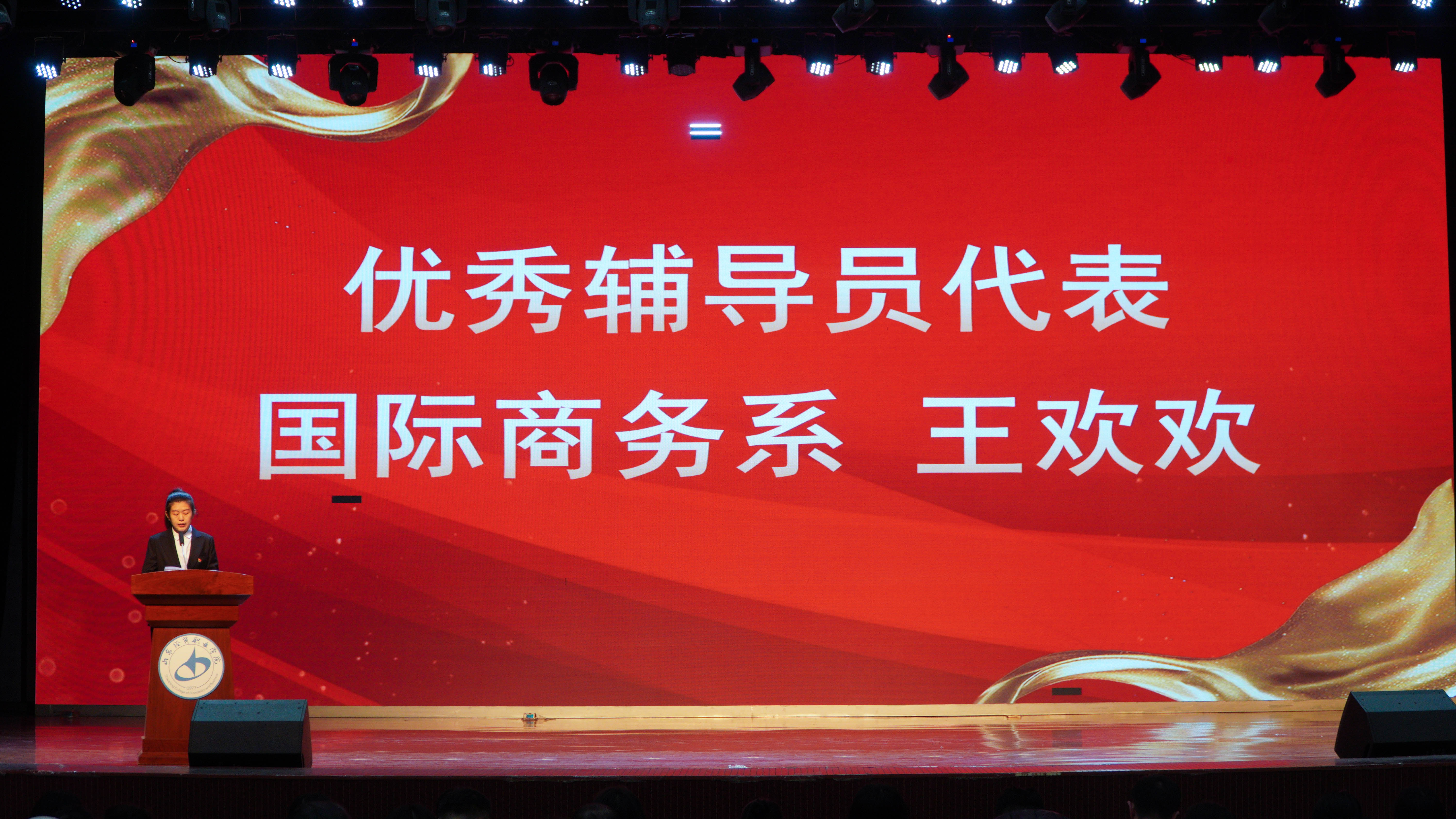 篮彩购买app优秀辅导员代表国际商务系团总支书记王欢欢,第九届“互联网+”大赛金奖指导教师、大赛优秀指导教师代表、科学与人文系教师吴志明依次上台发言。