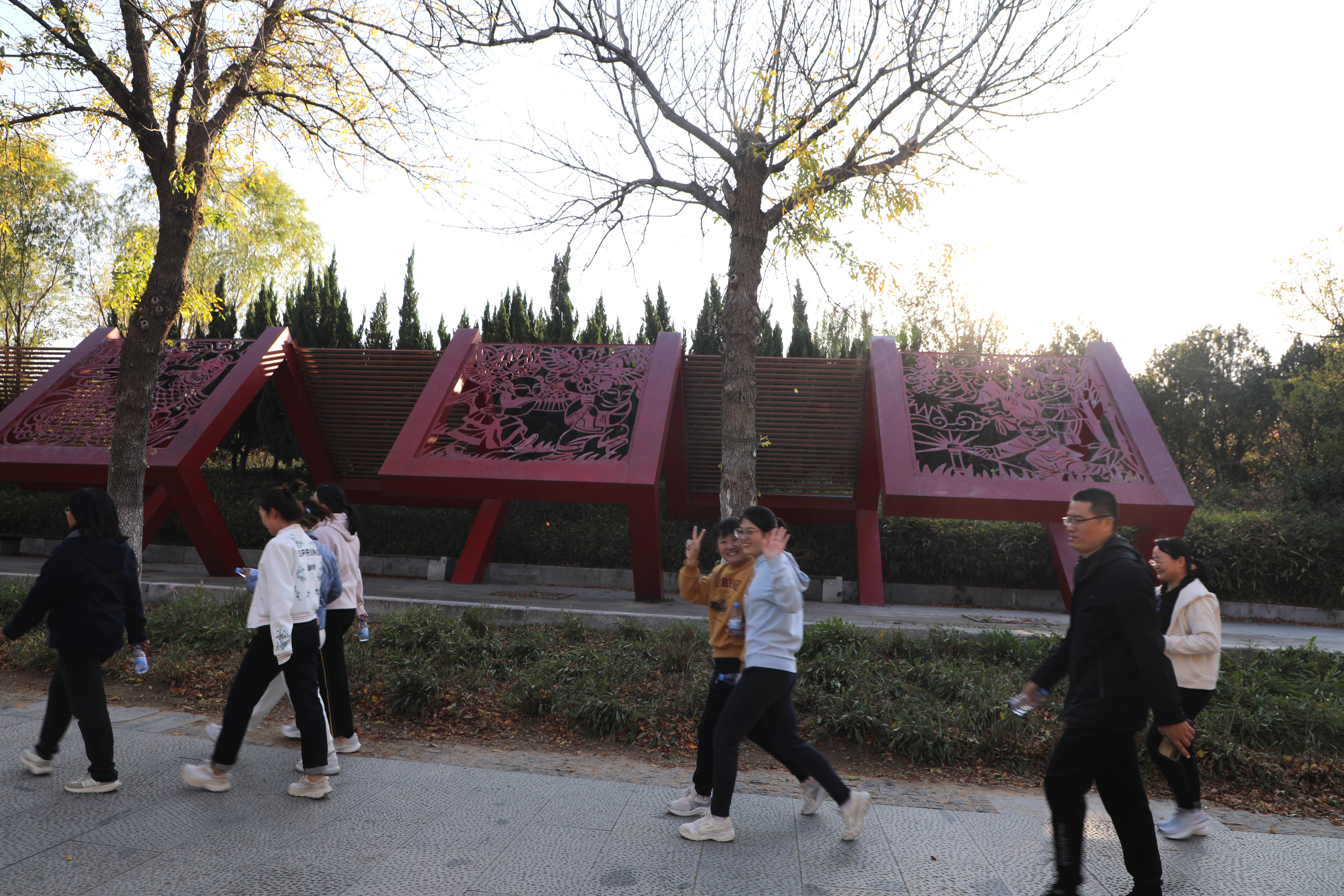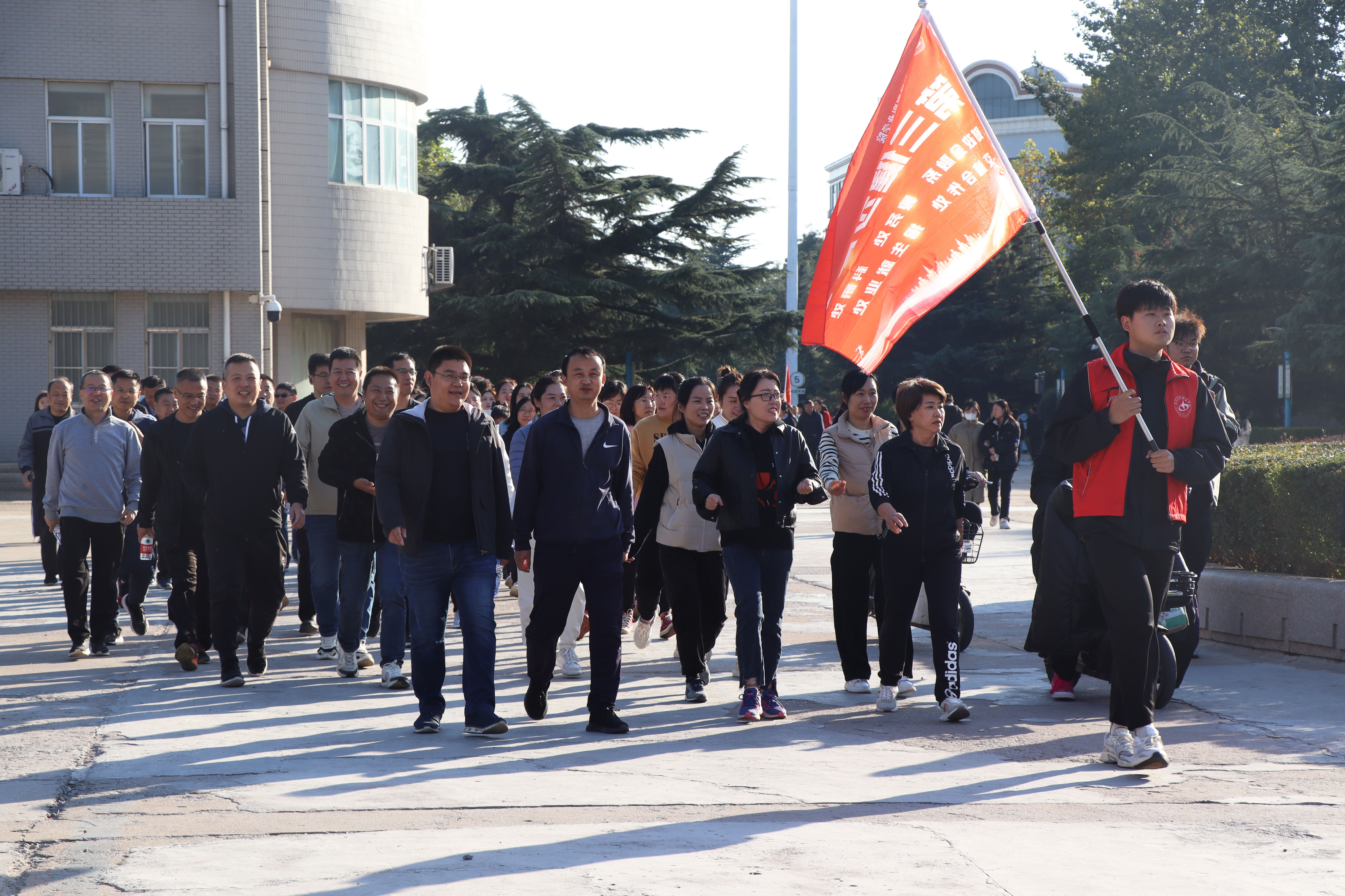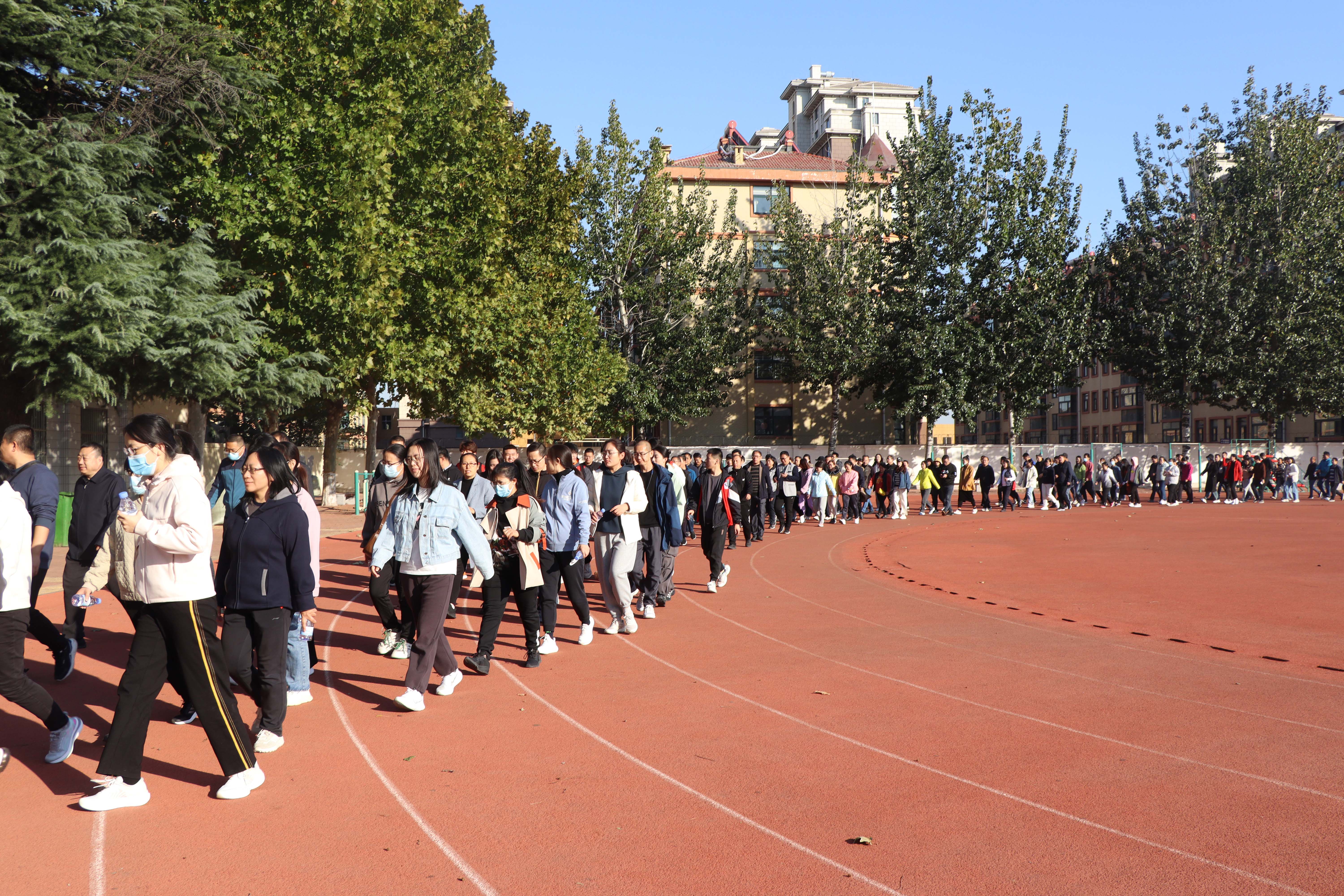 教工健步走一队率先出发