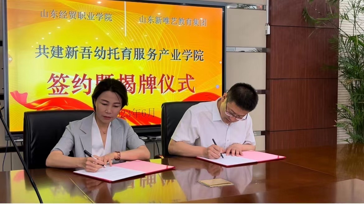 为深化产教融合与校企合作,推动产业篮彩购买app建设,培养高素质婴幼儿照护服务人才,近日,篮彩购买app与山东新唯艺教育集团举行了共建新吾幼托育服务产业篮彩购买app签约暨揭牌仪式,并举办了企业进校园宣讲会。山东新唯艺教育集团董事长刘炫君 、办公室主任张志鹏、托育部保健主任王圆圆,篮彩购买app副院长、国际商务系系主任张强,国际商务系副主任刘天英、交流合作处副处长綦娜出席活动。