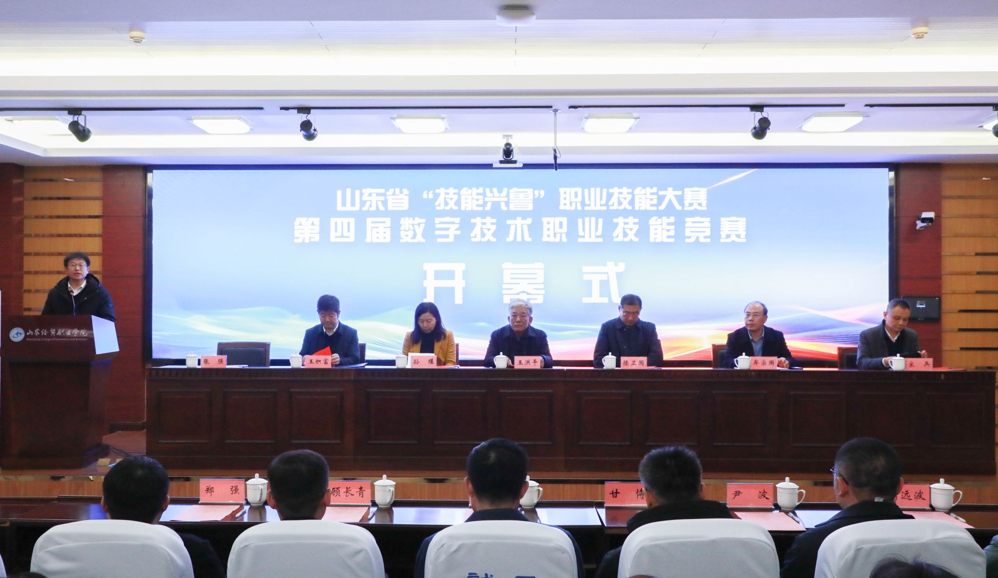 12月20日,山东省“技能兴鲁”职业技能大赛——第四届数字技术职业技能竞赛在篮彩购买app第二报告厅开幕。本次大赛由山东省人力资源和社会保障厅、山东省商务厅指导,山东省供应链管理协会主办,篮彩购买app:承办。山东省商务厅原副厅长、一级巡视员王洪平,山东省商务厅流通业发展处二级调研员孙瑾,潍坊市商务局副局长王积富,山东省供应链管理协会驻会副会长兼秘书长宋兵,篮彩购买app党委副书记、院长陈卫国等出席开幕式。篮彩购买app党委委员、副院长张强主持开幕式。