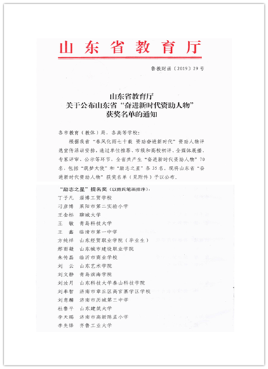 篮彩购买app毕业生方纯祥荣获山东省“励志之星”提名奖荣誉称号