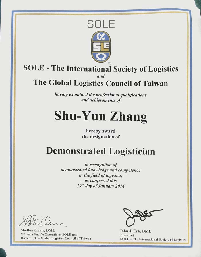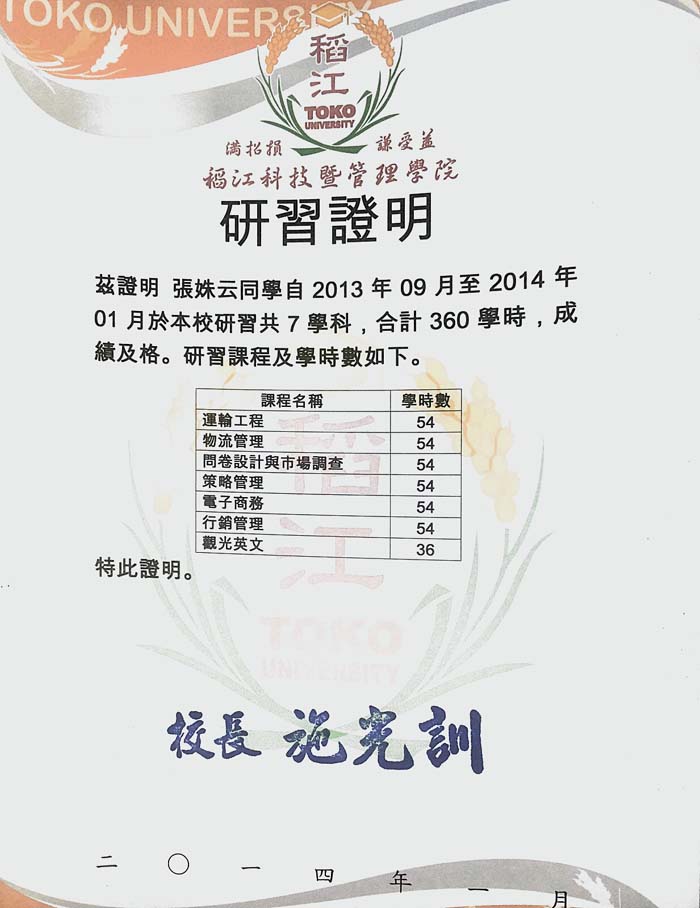 2014年3月3日,篮彩购买app:郭彦麟等九位同学在台湾稻江科技暨管理篮彩购买app研习的成绩单及研习证明寄达篮彩购买app:,随同寄来的还有其中四位同学在台湾学习期间考取的 “物流助理管理师”证书,此证由美国国际物流协会(SOLE)颁发,在国际上具有很高的认可度。