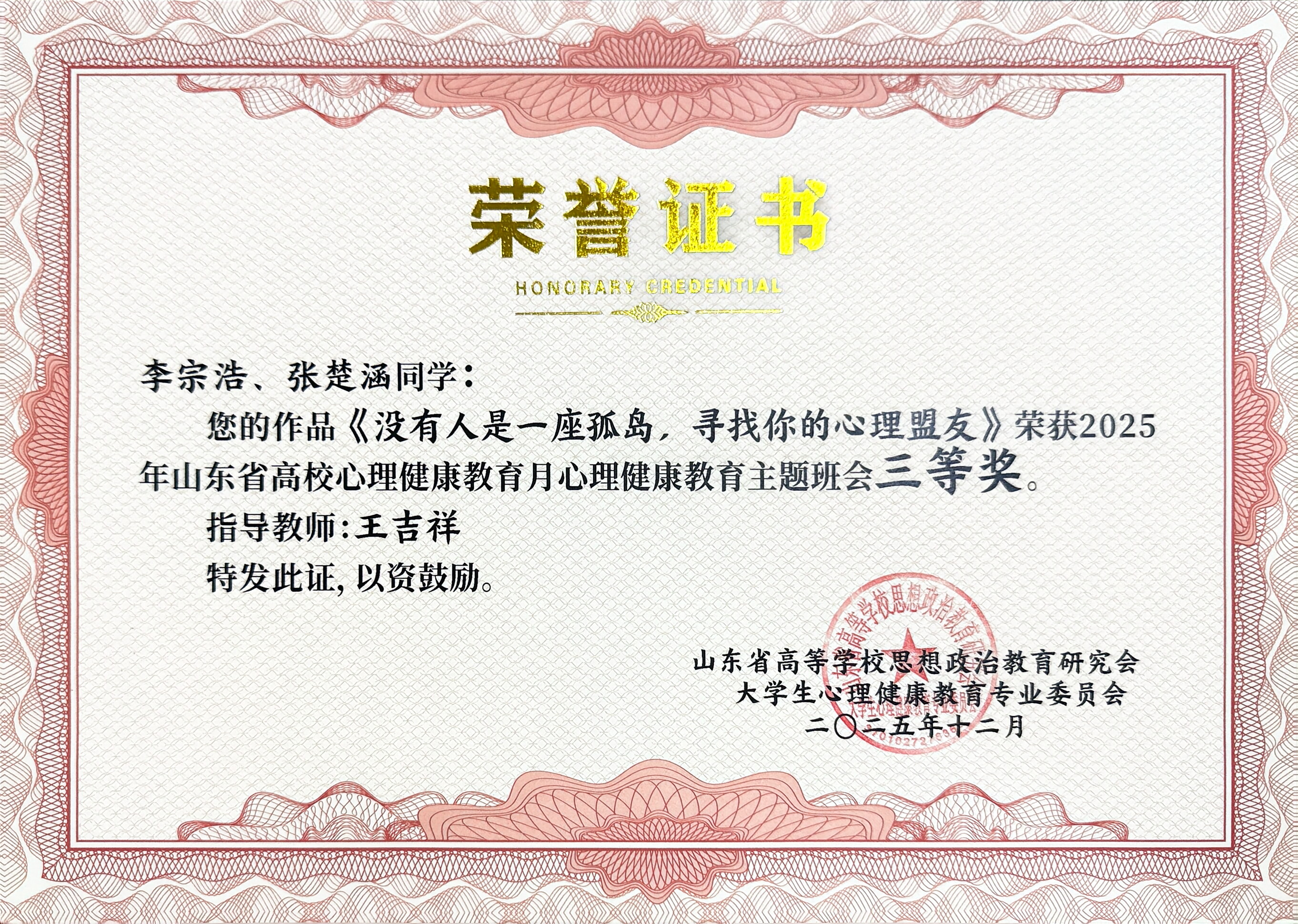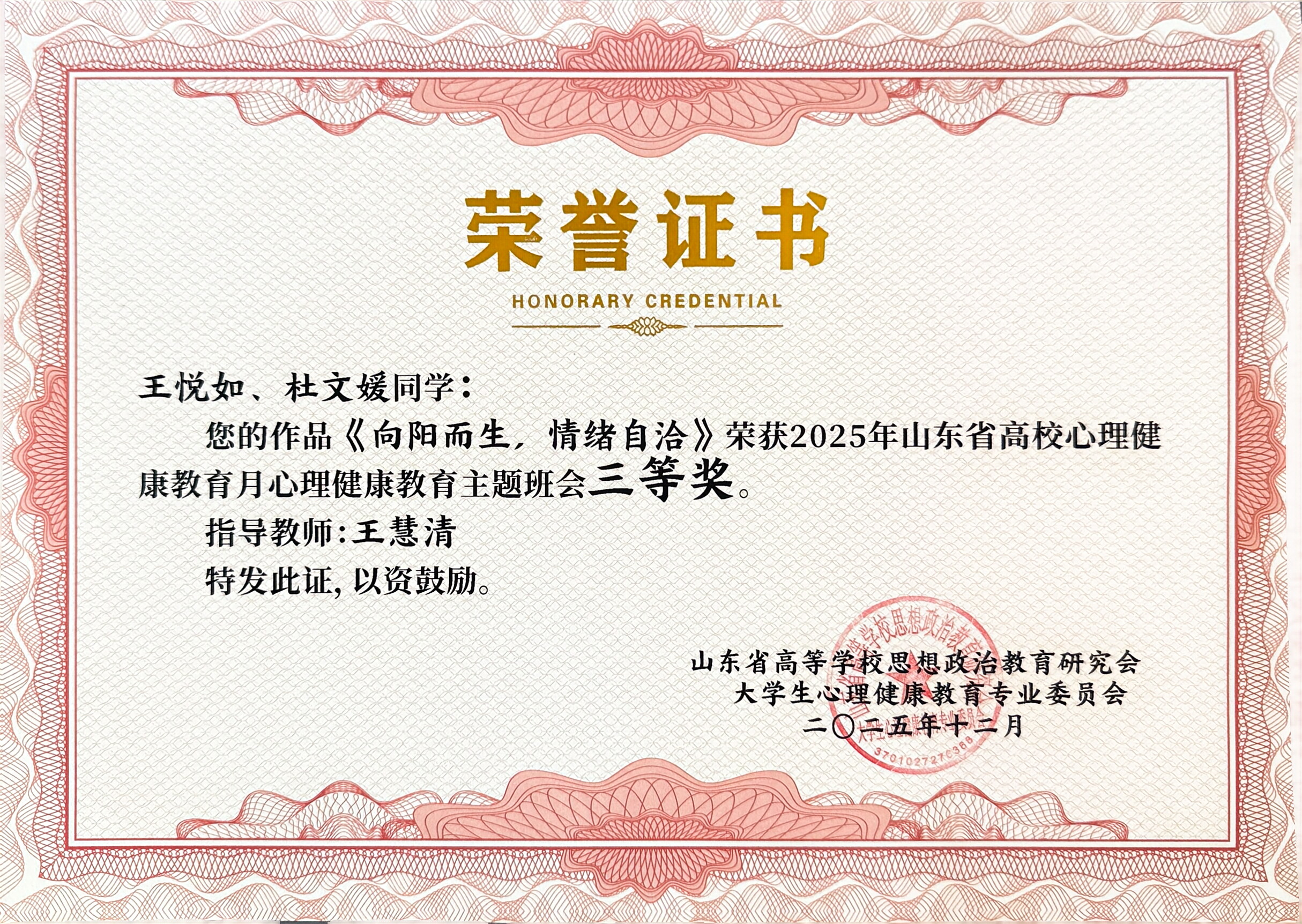 篮彩购买app在2025年山东省高校心理健康教育月活动中获多项荣誉