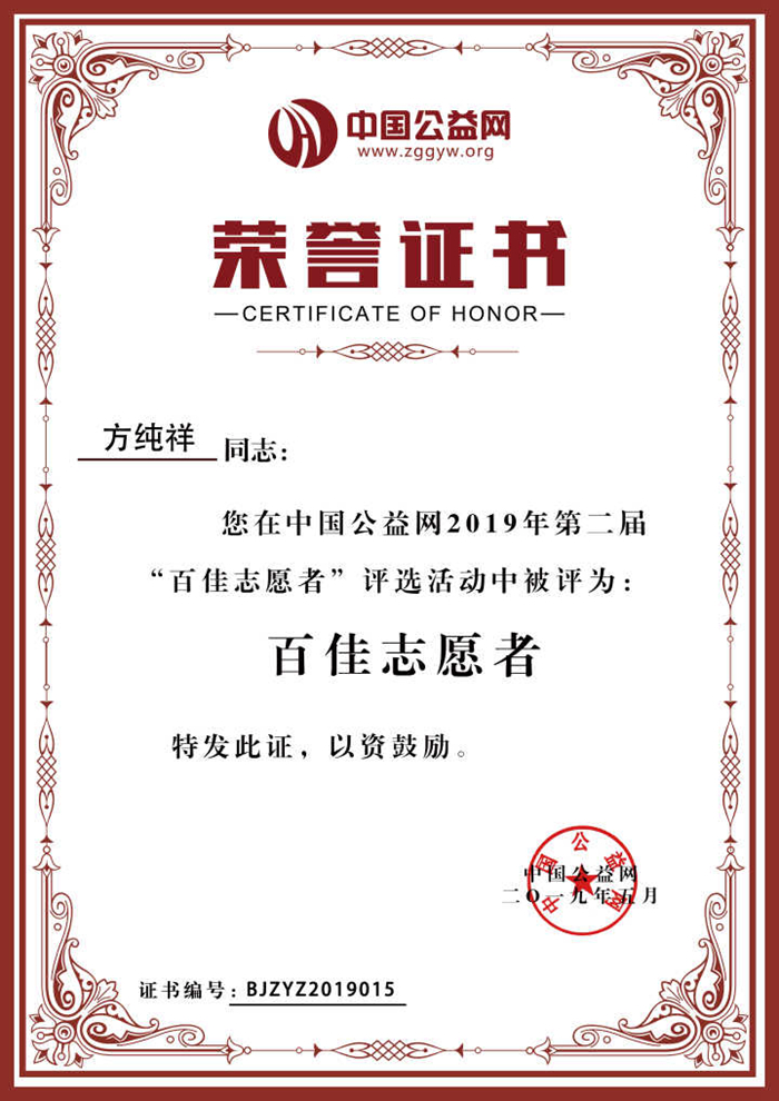 近日,中国公益网公布了2019年第二届“百佳志愿者”评选结果,篮彩购买app:会计系2018届毕业生方纯祥名列其中。