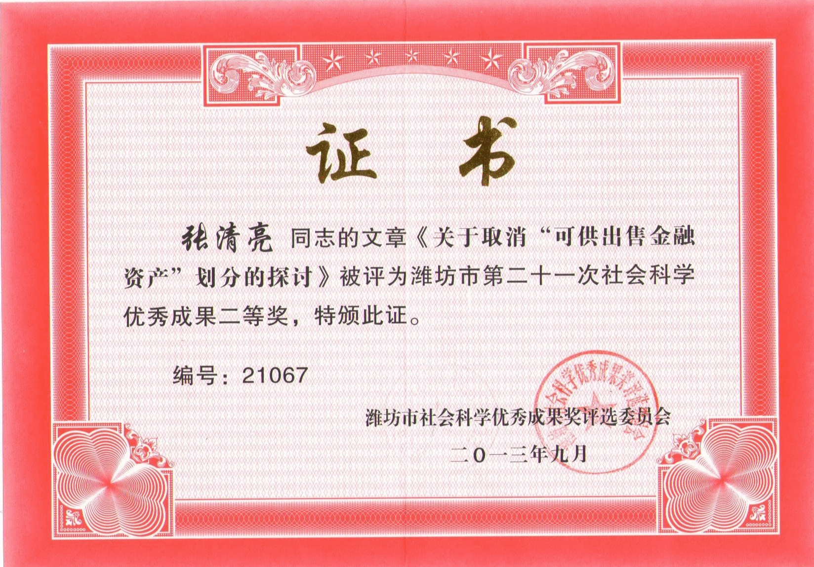 此外还积极参加各级教学技能大赛及科研成果大赛,取得了优异成绩。在首届山东省高等学校教师微课教学比赛中获二等奖,课件《存货计价方法》获第二届全国高职高专工商管理类教学课件大赛三等奖,多篇论文获潍坊市社会科学优秀成果二等奖和三等奖;指导学生参加全国证券投资模拟实训大赛获一等奖、二等奖、三等奖各1项。