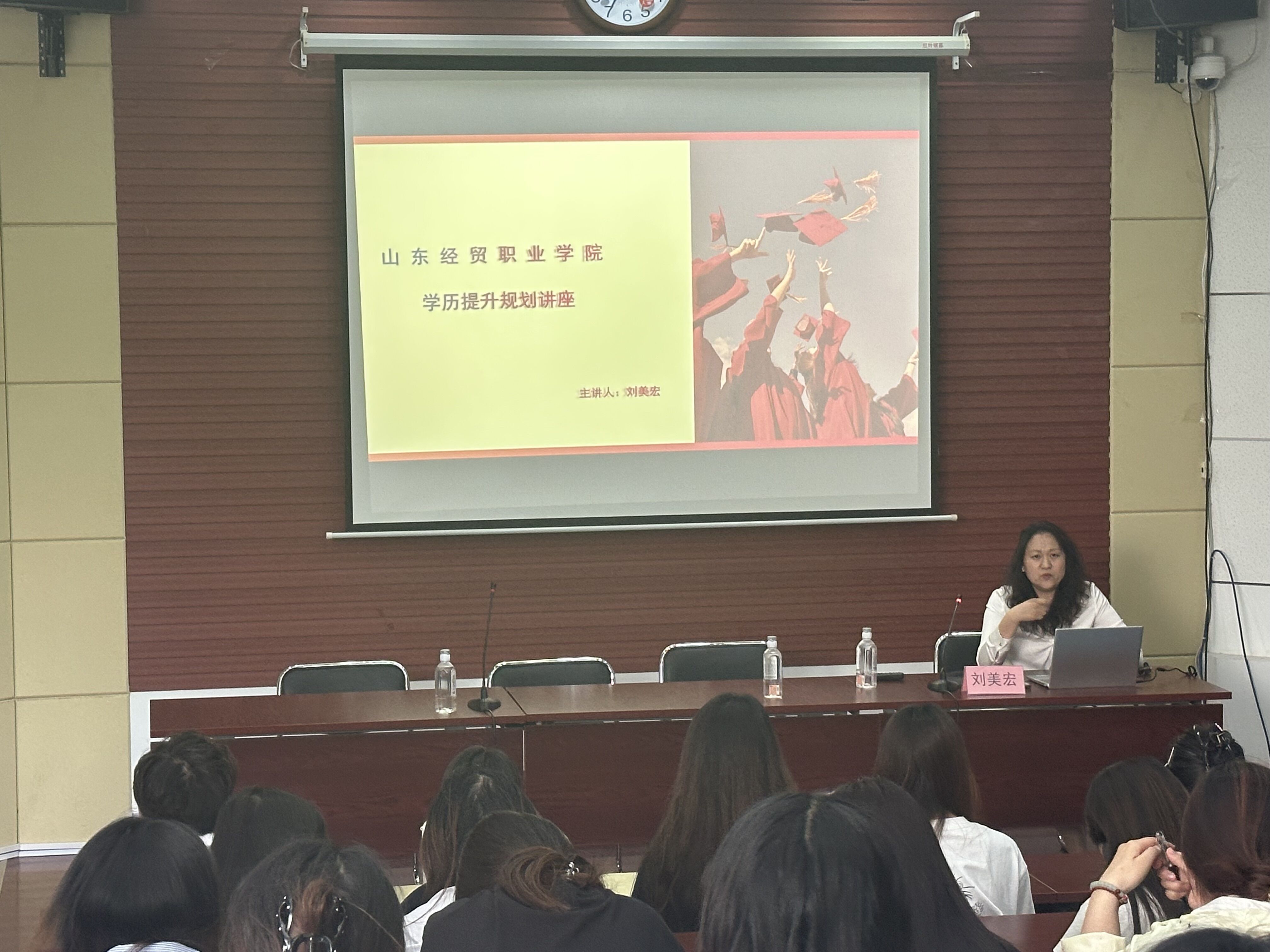 为进一步激发学生学历提升动力,拓展升学路径,5月15日,会计系在会计大讲堂举办主题为“梦想不设限:你的学历你做主”的学历提升专题讲座。讲座由大数据与会计专业负责人闫菲主持,会计系副主任张建峰到会指导。