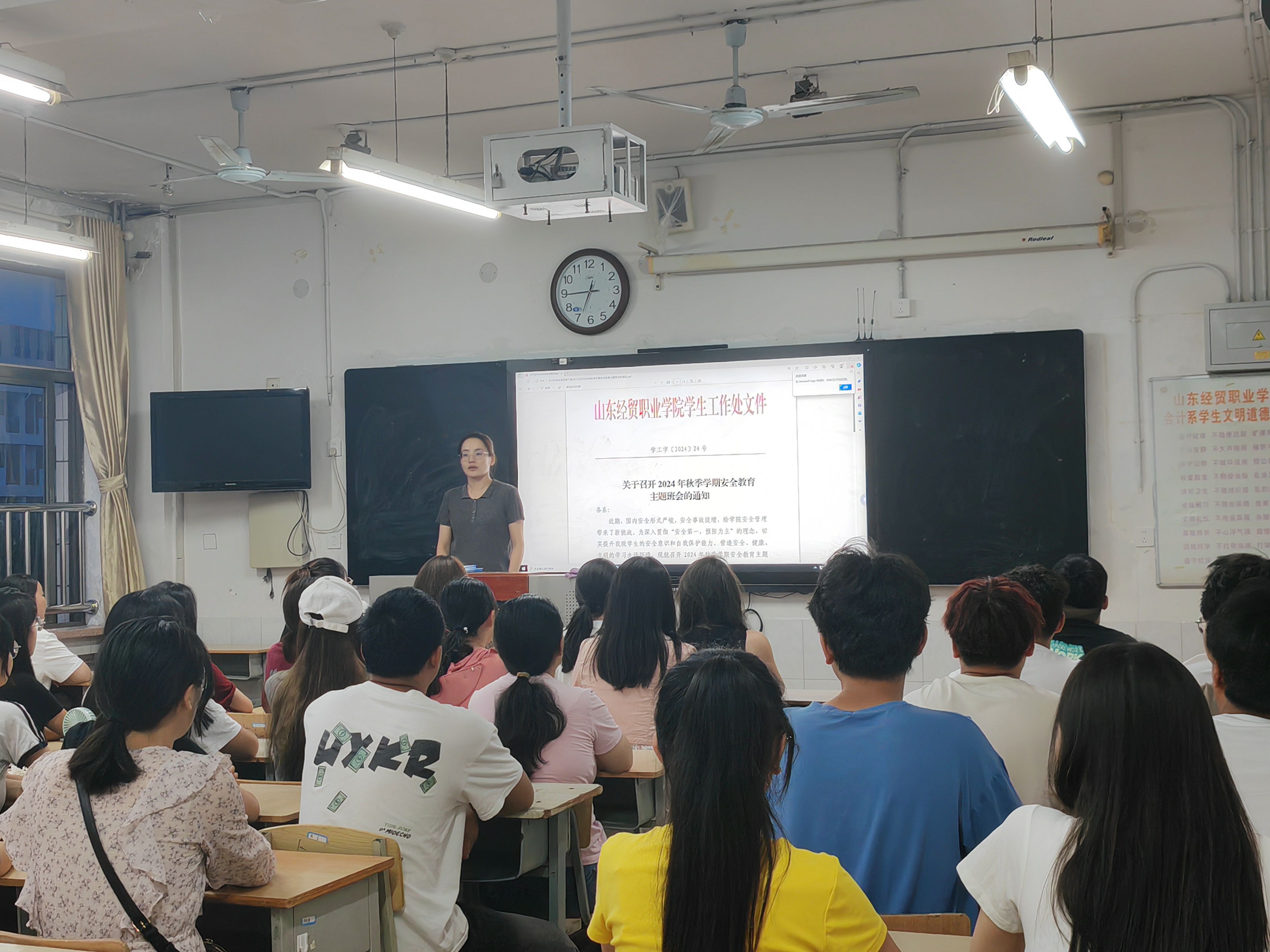 为进一步推进平安校园建设,切实提升会计系学生的安全意识和自我保护能力,营造安全、健康、文明的学习生活环境,9月6日,会计系组织全体辅导员在1号教学楼召开了2024年秋季学期安全教育主题班会。