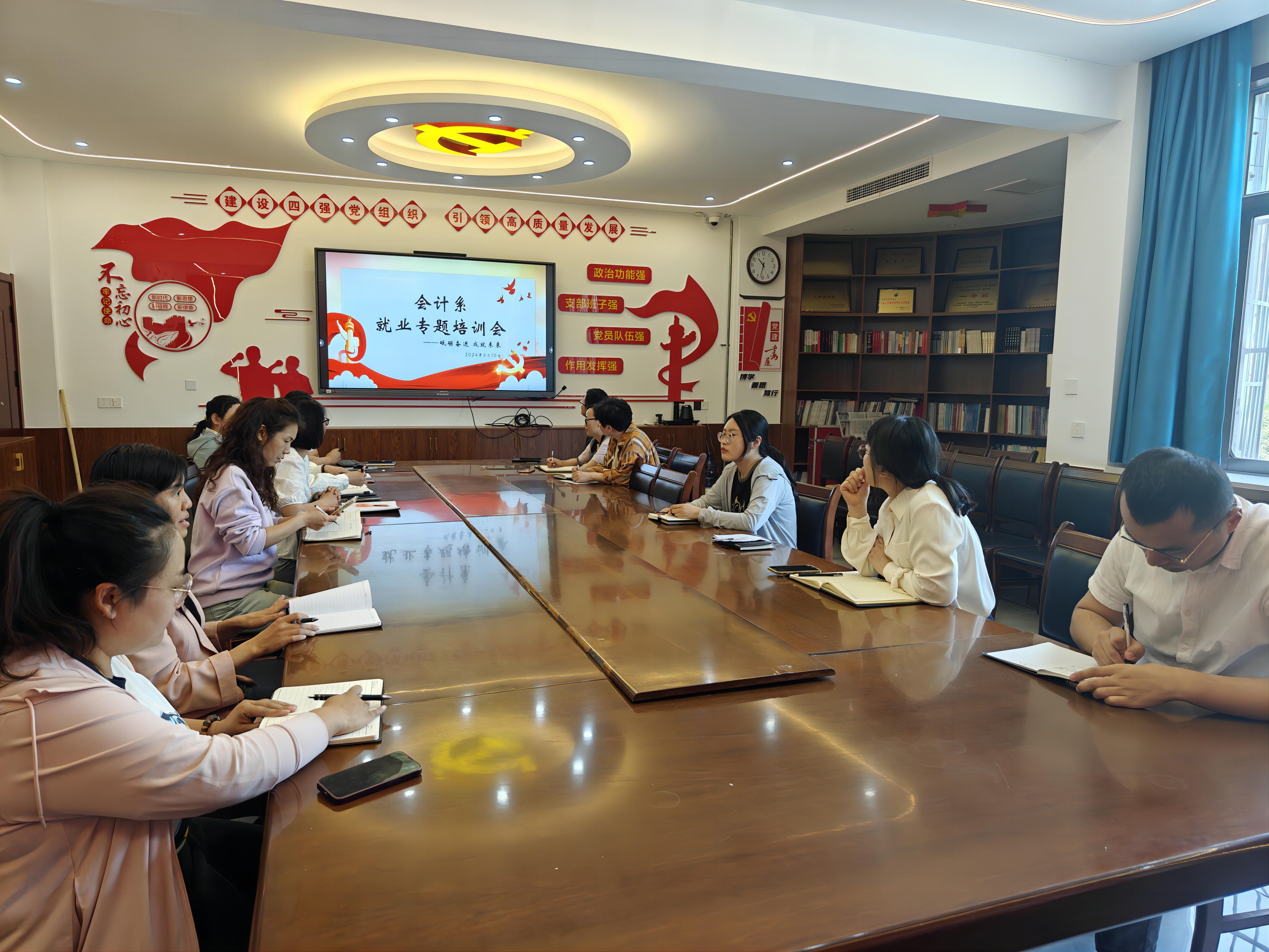 为更好的促进2024届毕业生就业,提高就业质量,结合篮彩购买app要求,围绕大学生就业痛点、难点,按照会计系第一期辅导员“用爱铸魂 师生连心”专题教育活动的安排。5月10日上午,会计系在1号教学楼106会议室举办“砥砺奋进 成为未来”就业专题培训会。本次培训会由会计系辅导员付强主讲,会计系全体辅导员参加。