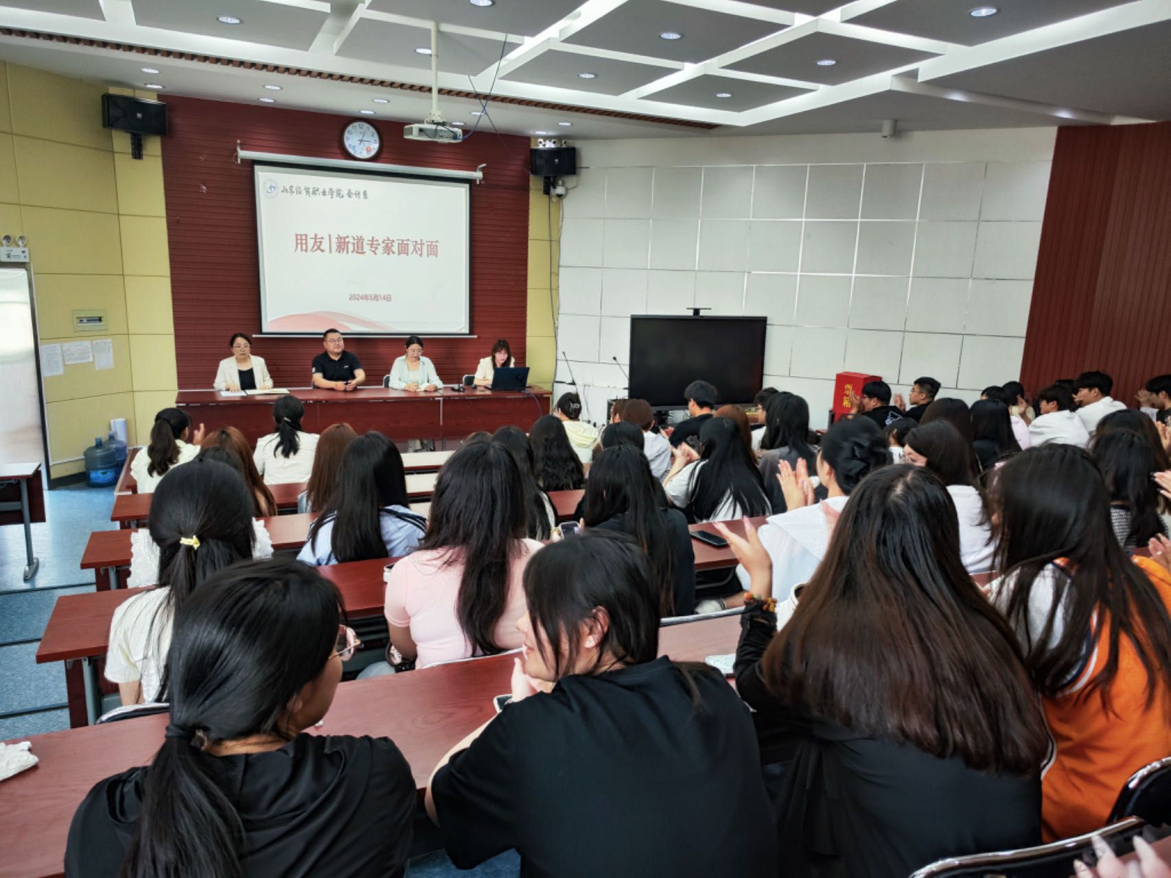 5月14日下午,篮彩购买app:举办了一场“企业专家面对面”主题活动,邀请了用友新道公司两位企业专家进校园,为会计信息管理专业的学生们带来宝贵的职业指导。