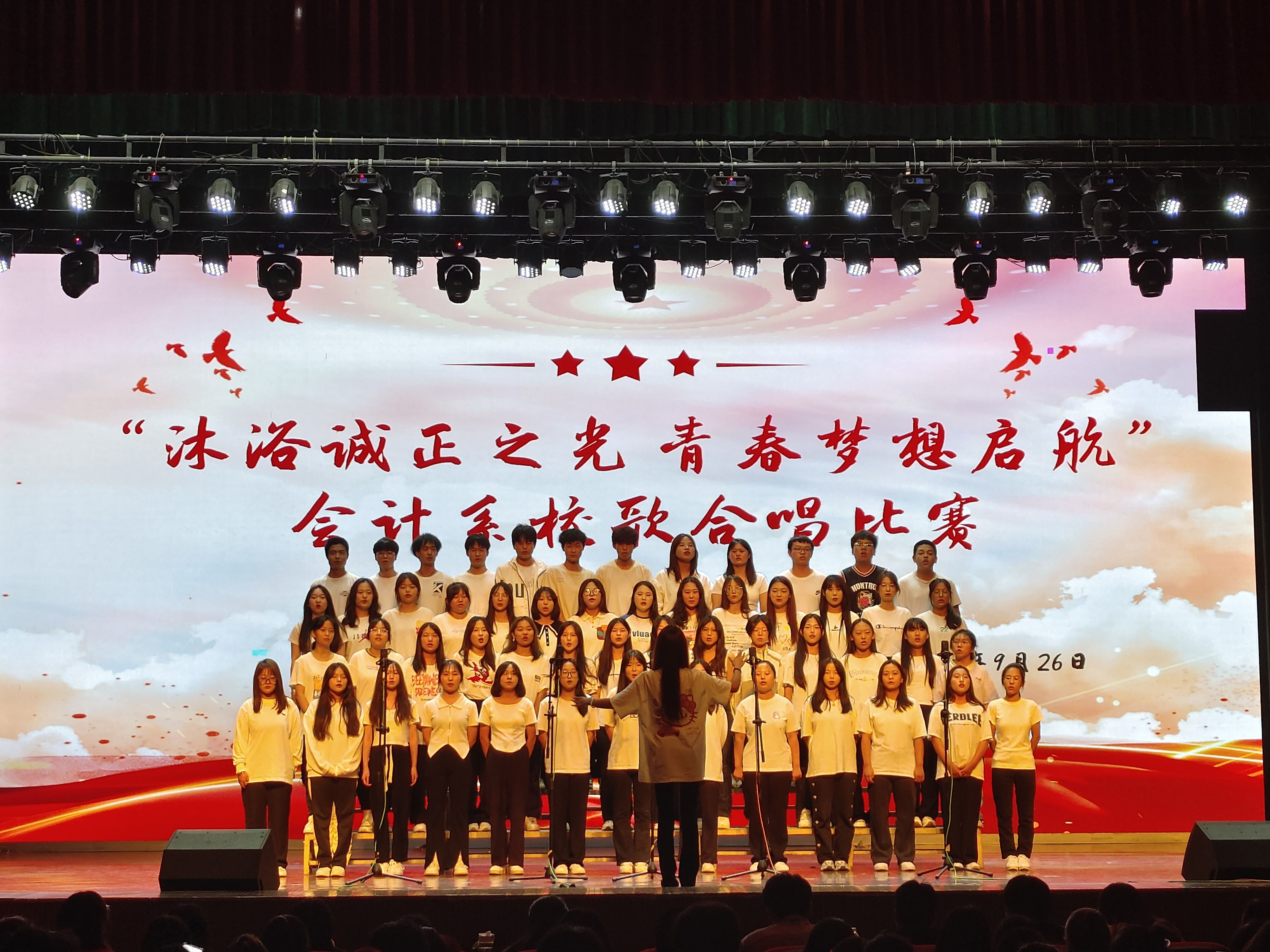 根据篮彩购买app“知校史、行校训、践校风、唱校歌”主题活动的有关要求,结合会计系2023级新生入学教育活动的安排,会计系于9月26日晚在大学生活动中心举办了“沐浴诚正之光 青春梦想起航”校歌合唱比赛,会计系2023级全体学生参加了比赛。