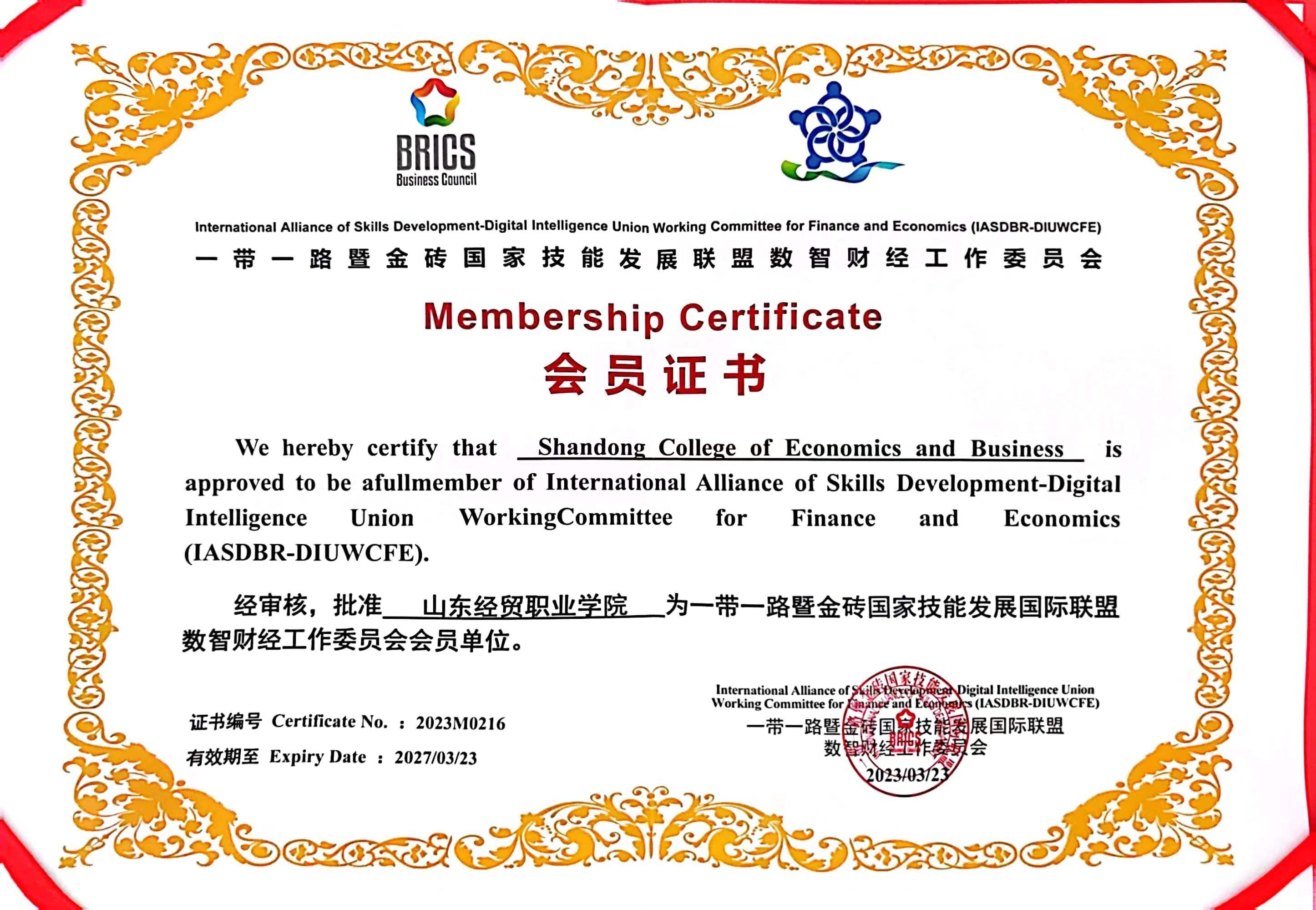 2023年3月25日-26日在南京召开一带一路暨金砖国家技能发展国际联盟数智财经工作委员会全体委员会议,篮彩购买app:会计系陈明老师参加本次会议,会上,篮彩购买app:被遴选为一带一路暨金砖国家技能发展联盟数智财经工作委员会会员单位。