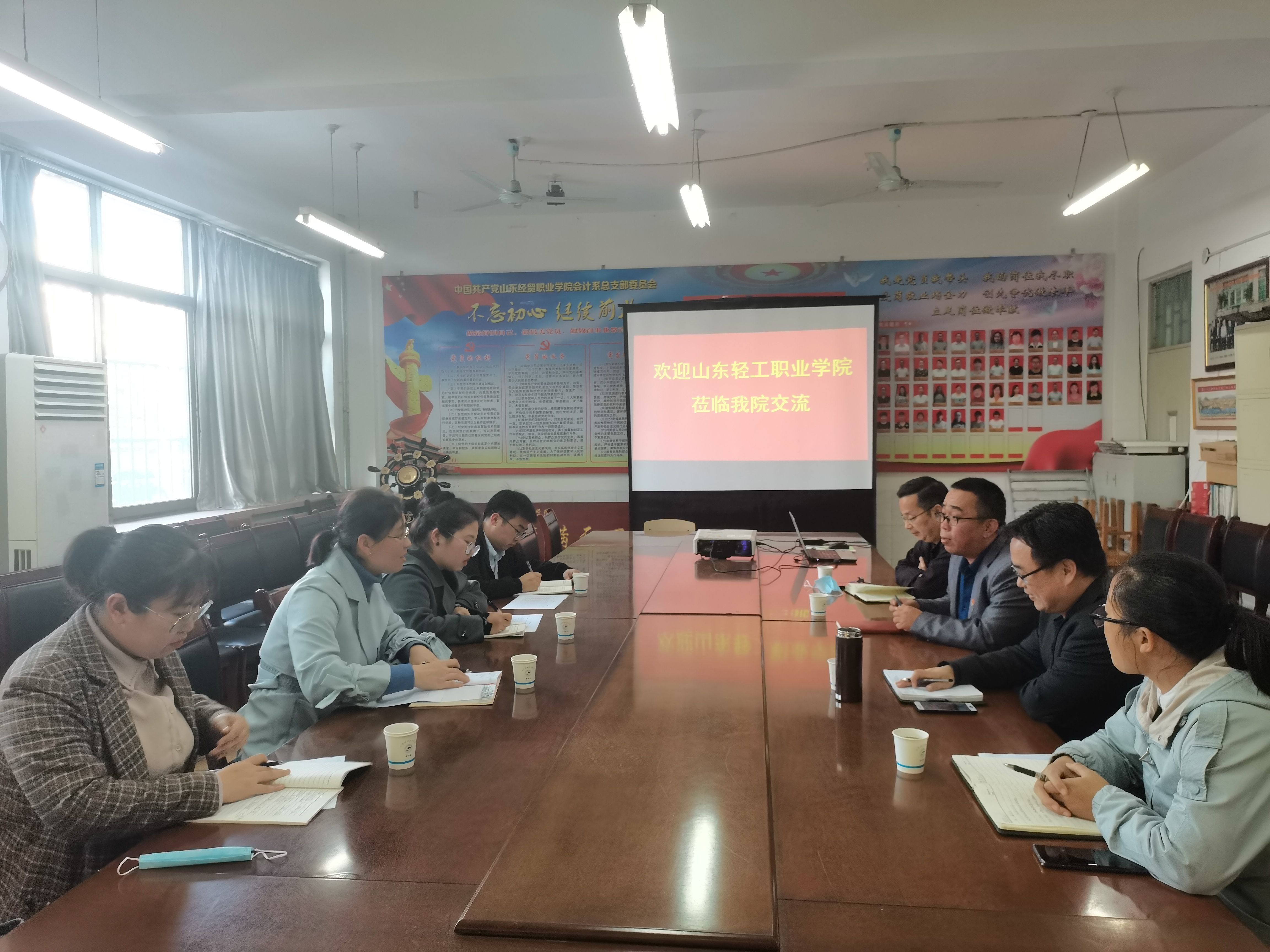 10月27日,山东轻工职业篮彩购买app工商管理系党支部书记王茜、副主任国帅、财经教研室主任王守振、骨干教师杨琛子一行四人来到会计系访问交流。篮彩购买app:会计系党总支书记陈志勇、副主任陈东、张建峰、智能会计教研室主任李树叶参加交流。