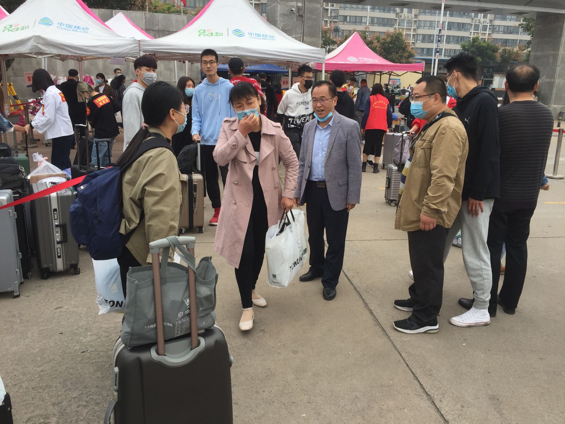 校门口,老师们从家长手中接过沉甸甸的行李,一趟趟装车、运送。从北大门到会计系报到处,再到宿舍楼,校园里处处涌动着师生志愿者忙碌的身影,拉皮箱、搬被褥、帮新生整理床铺,志愿服务不仅为独立报到的新生提供了最大的便利,也拉进了新生与老生的距离。