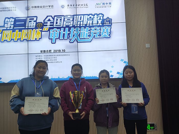 10月26日,由中国高等教育学会高等财经教育分会、中国商业会计学会、安徽审计职业篮彩购买app和厦门网中网软件有限公司联合主办,我系代表队由秦敏、杨帆两位老师指导的四名学生雷亚静、许诺、宋淑婷和聂玲玉在第三届全国高职院校“网中网杯”审计技能竞赛中荣获二等奖。