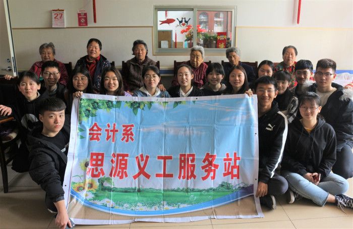 4月27日中午,会计系思源义工服务站30多名志愿者来到奎文区桃源老年公寓,开展了“心连心关爱老人”的志愿服务活动。