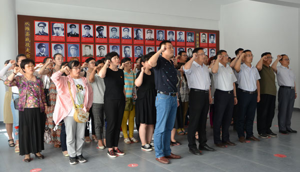 潍县战役党性教育基地位于十笏园文化街区内,布展面积780平方米,主要体现“把胜利红旗插上潍县城头”主题及“为谁当兵,为谁打仗”的宗旨观念、“战必胜,攻必克”的攻坚意志、“光荣地进去,干干净净地出来”的纪律意识。综合利用声光电等现代展示手段,通过敌我攻防态势沙盘、展板、实物、视频等,全面系统地还原战前、战中、战后历史情景。在潍县战役党性教育基地,大家先后观看了专题片《把胜利红旗插上潍县城头》,参观了各个展览单元。随后,在主展馆宣誓厅内,面对鲜红的中国共产党党旗,举起右拳一起重温了入党誓词。