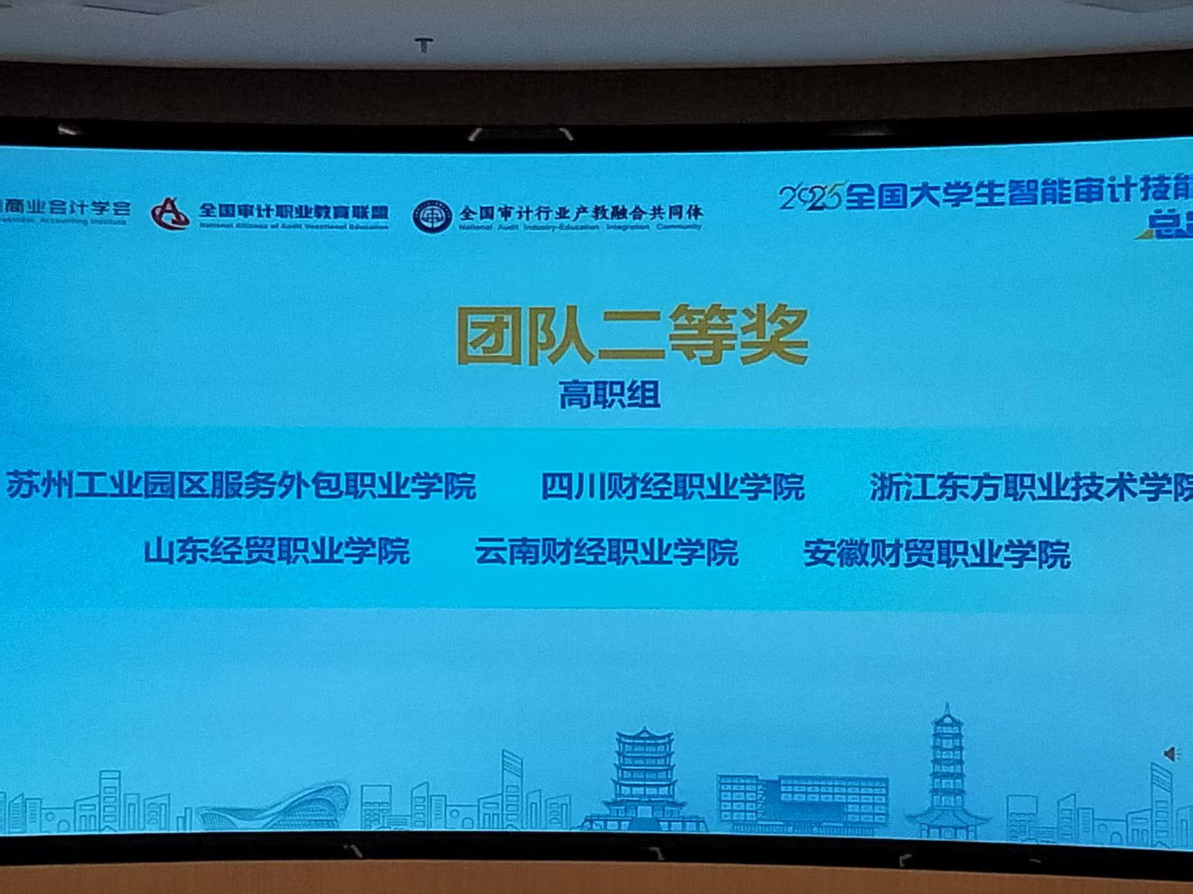2025年6月8日,2025全国大学生智能审计技能竞赛总决赛(高职组)在安徽审计职业篮彩购买app举办。篮彩购买app秦敏、邵苗苗两位教师指导的2023级大数据与审计专业郭一畅、王雪丽、韩露和郭一四位同学获二等奖。