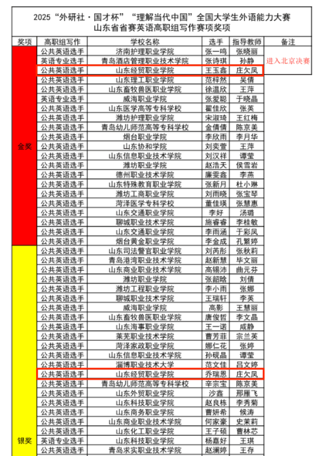 在省赛中,篮彩购买app庄欠凤老师指导的大数据与财务管理专业王玉鑫同学与大数据与审计专业乔瑞恩同学表现优异,从全省98所院校,201名选手中脱颖而出,分别荣获山东省赛金奖和银奖,并且王玉鑫同学以前三名代表山东省进入全国总决赛。