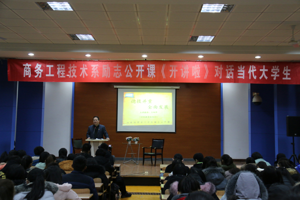 2017年12月19日晚7点,商务工程技术系团总支在第一报告厅举办了大学生励志公开课第四期,篮彩购买app教务处处长王炳华教授做为此次的特邀嘉宾,现场倾情做了以“德技并行全面发展”为主题的演讲。